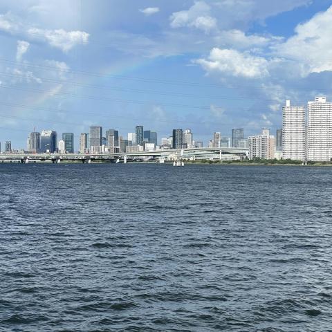 尼崎城、尼信会館を見学して、めでタイガーのマジックナンバーを確認しての帰り道、梅田に虹。