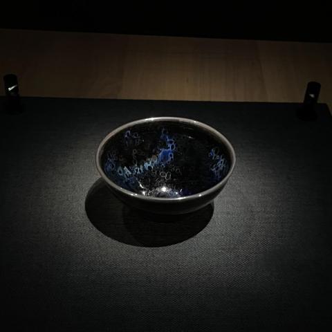 焼いてみないとどんな景色になるかはたぶん運次第。たまたまこの美しい青い光彩を輝かせた、自然が生み出したふたつとない茶碗だ…