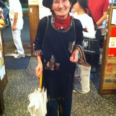 居酒屋さんで出会ったおかあさんです。写真がちょっと不鮮明なのが申し訳ないのですが、黒をベースにポケットや袖口、首周りにカ…