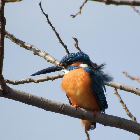 昨日のカワセミ、せっかくピントがあったのに目が被ってしまったのが悔しくて、今朝は河川敷のカワセミポイントへ直行。