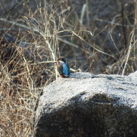 まずは人工川でカワセミとジョウビタキにあいさつ。