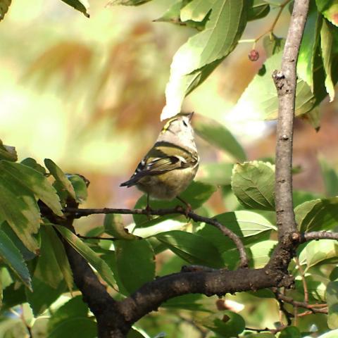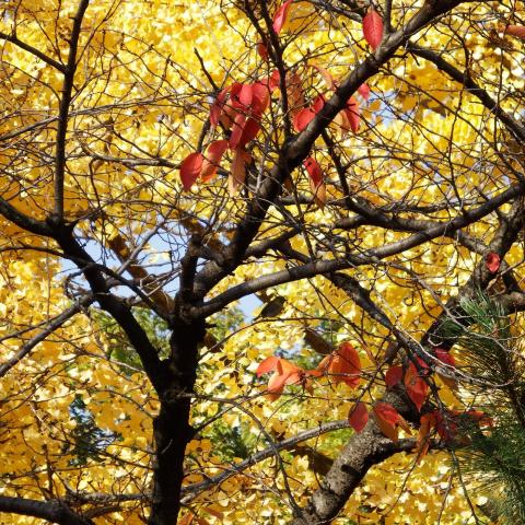 イチョウと青空を撮ってみます。銀杏は好みではないのか、イチョウに止まる鳥は少ないです。