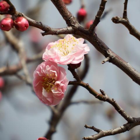 大阪市内の最高気温は9℃でも、風が強くて寒いです。梅林の梅は、まだまだ咲き始めも、一番可憐な時期かも知れません。