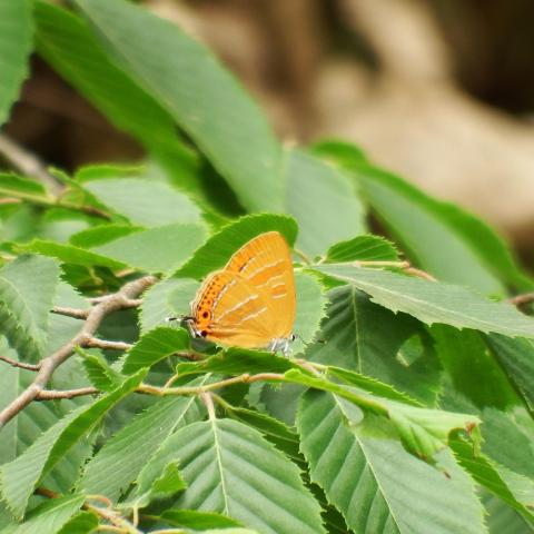 大手前の石畳にじっとしているゴマダラチョウ、危うく自転車で轢き潰すとこ…