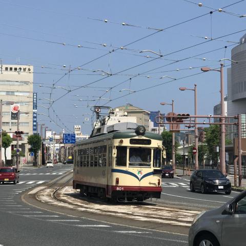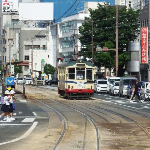 とさでん交通標準色200形家庭用クーラー室外機搭載…