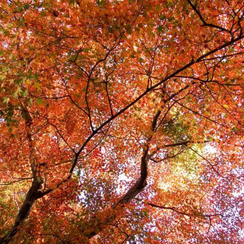 昨日のお城、枯葉のカーペットの向こうに天守閣。北外堀のイチョウ並木もまだ綺麗です。