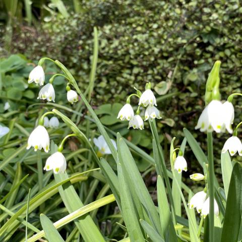 千日前通歩道の植栽にツルニチニチソウ。種が飛んできてここで育…