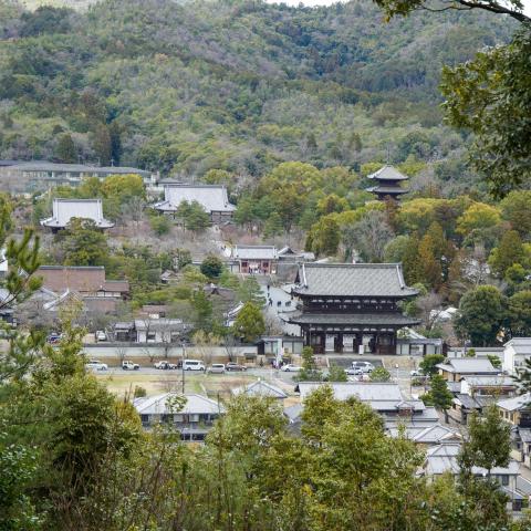 承前、嵐電北野線御室仁和寺駅から真正面150mで仁和寺の二王門。