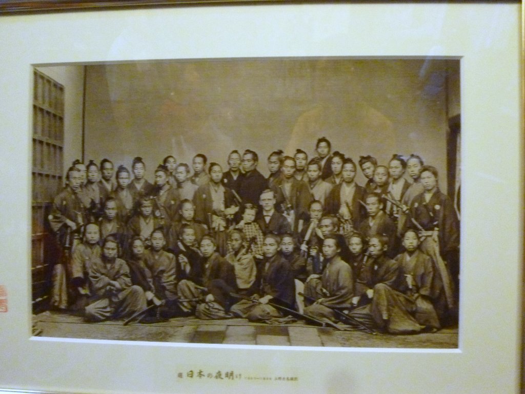 フルベッキ写真と言われるもので、中央の外人さん、フルベッキ博士の上が西郷隆盛、その左が大久保利通、さらに左が小松帯刀、その左下が岩倉具視、前列一番左で腕を組んでいるのが桂小五郎とされていますが、調べてみると、ここに明治天皇まで写っている(フルベッキの左前)という説まであって、どうも真偽のほどは定かではないようです。