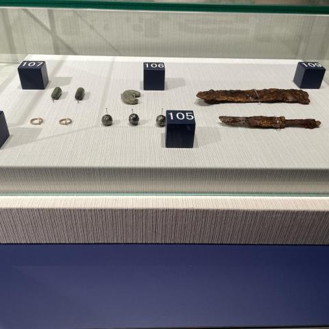 金環、銀製空玉、勾玉、管玉、刀子、鎌