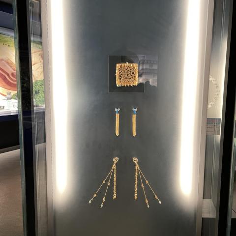 金製龍文方形板、金製螺旋状髪飾り、金製垂飾付耳飾