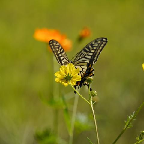 キバナコスモスにナミアゲハ