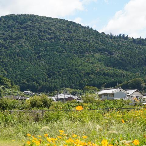 キバナコスモスに三輪山