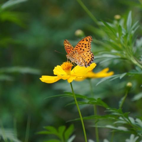 キバナコスモスにツマグロヒョウモン