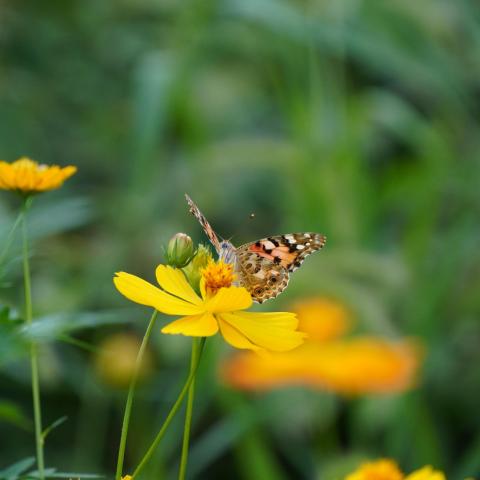 キバナコスモスにヒメアカタテハ