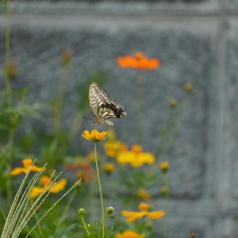 キバナコスモスにナミアゲハ