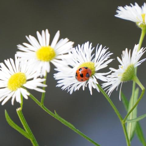 ヒメジョオンにナナホシテントウ