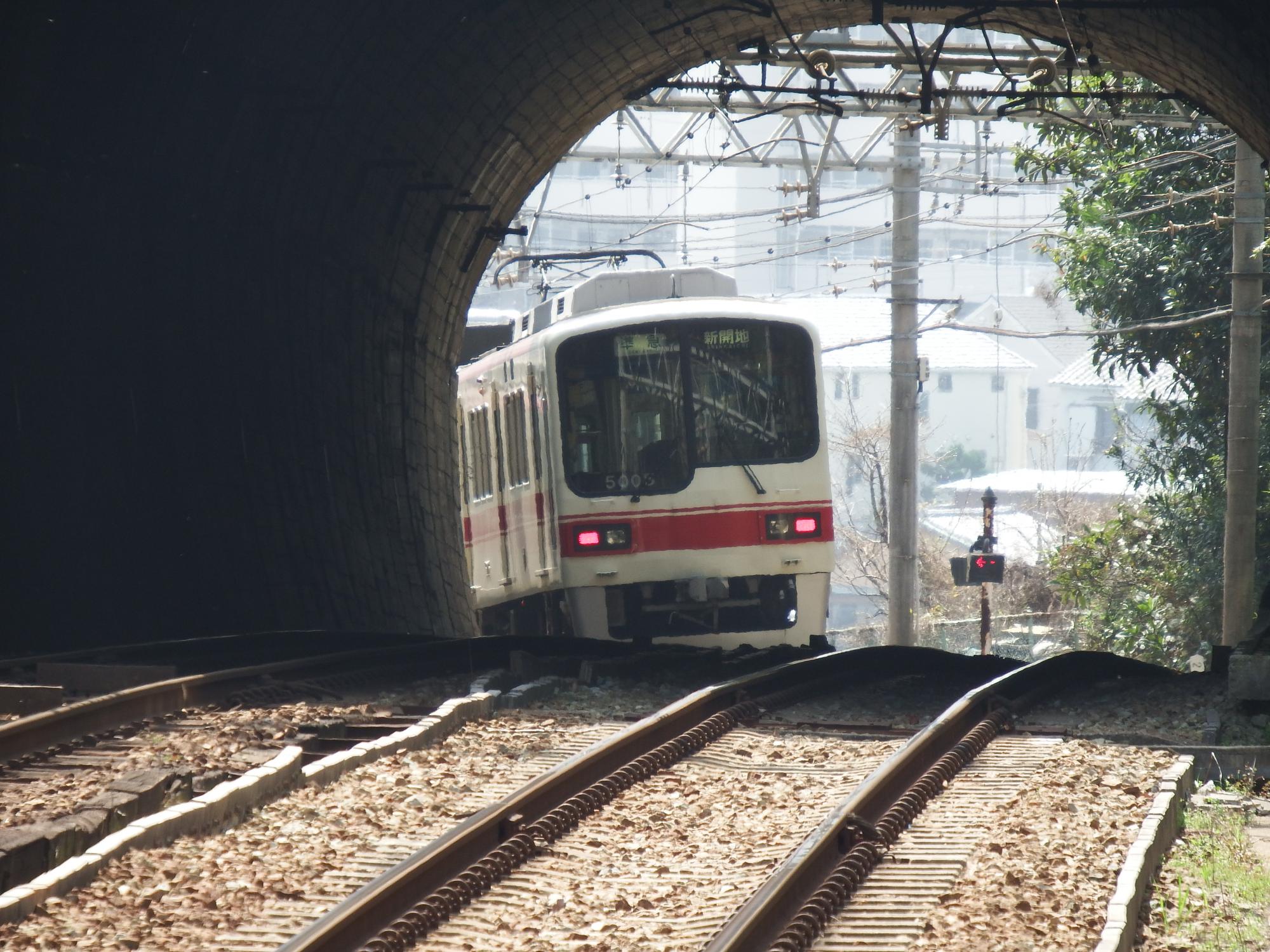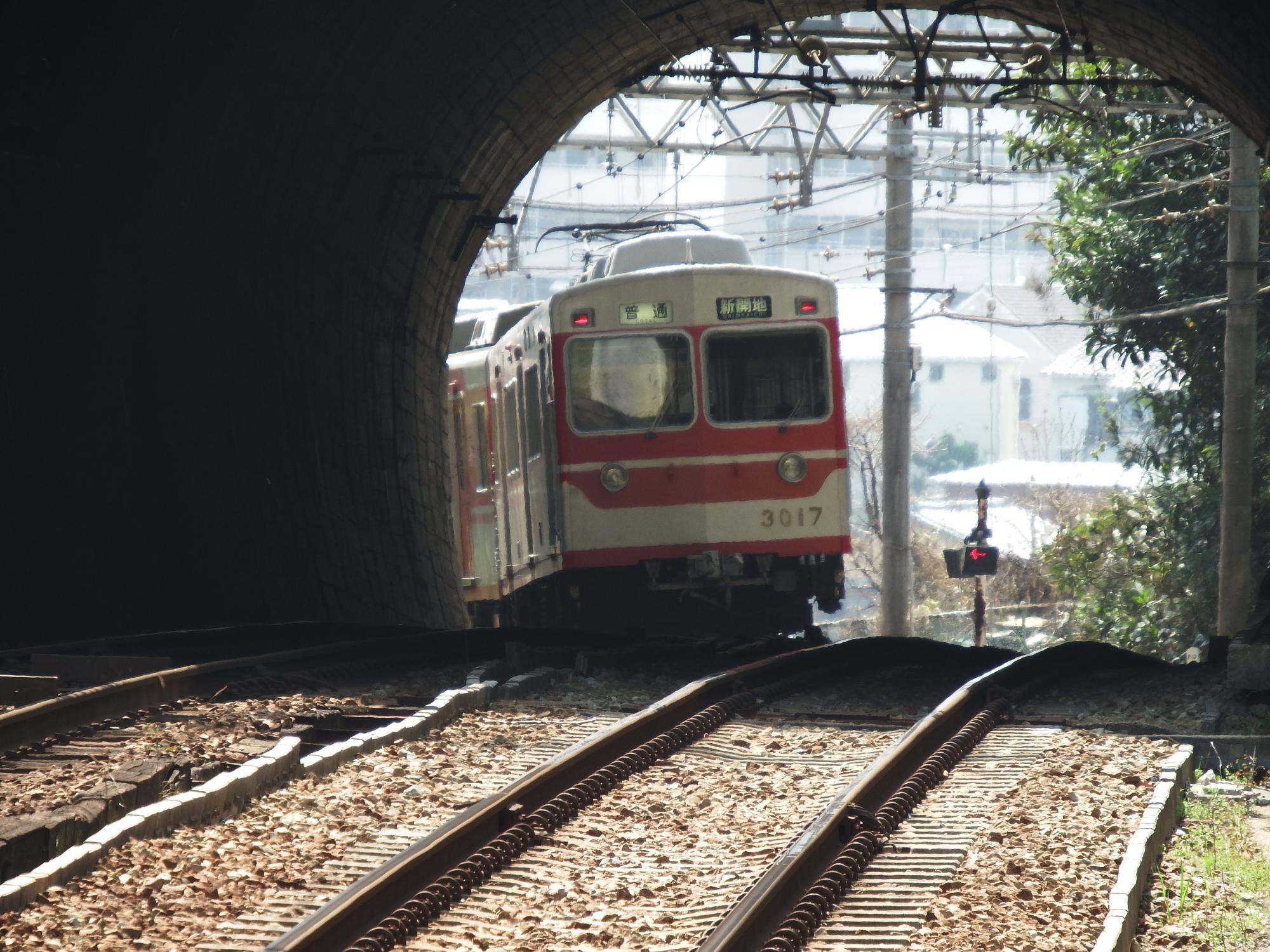 お気に入りの鵯越駅の短いトンネルを抜けるシーン、5000系