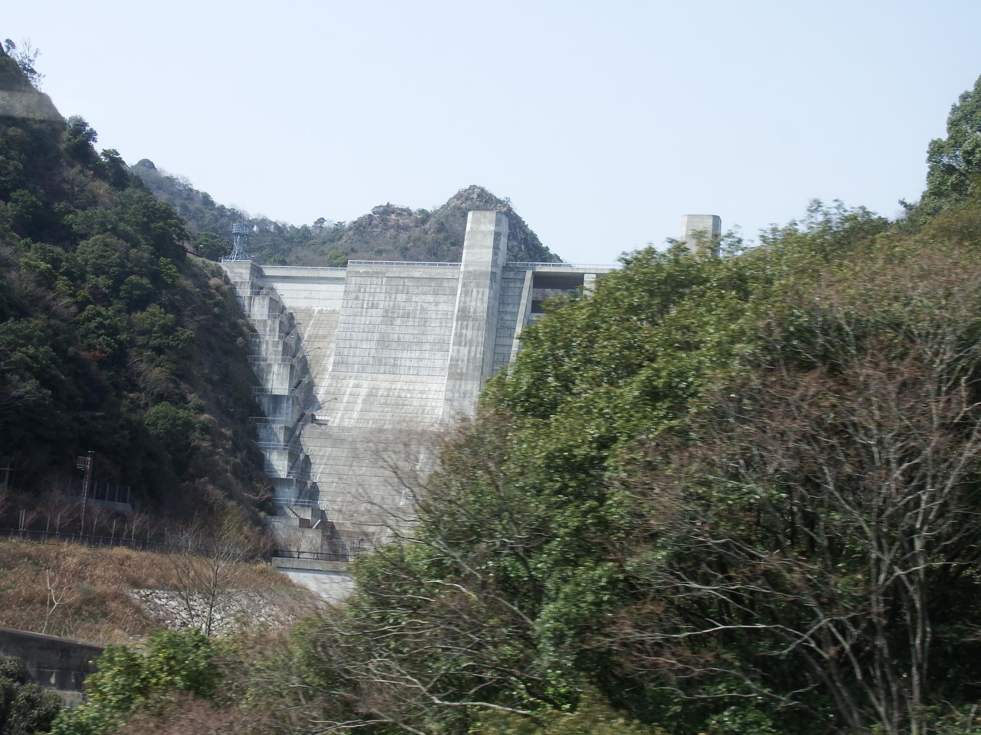 やってきた3000系で鈴蘭台へ戻ります。車内からみた休止中の菊水山駅と石井ダムです。