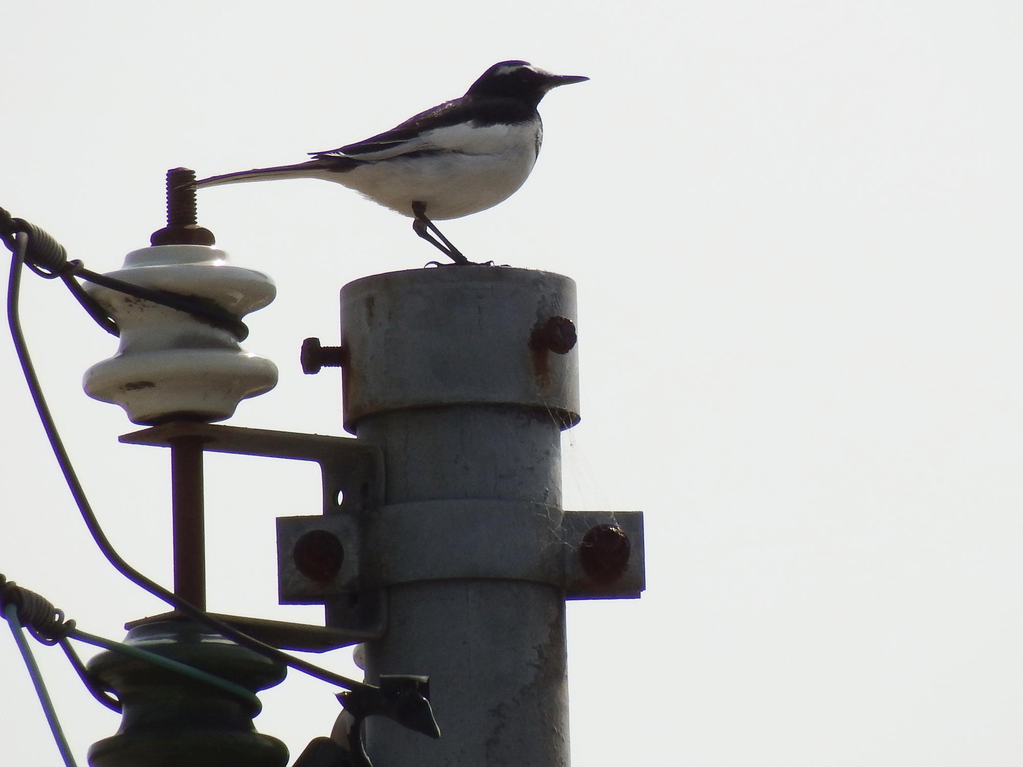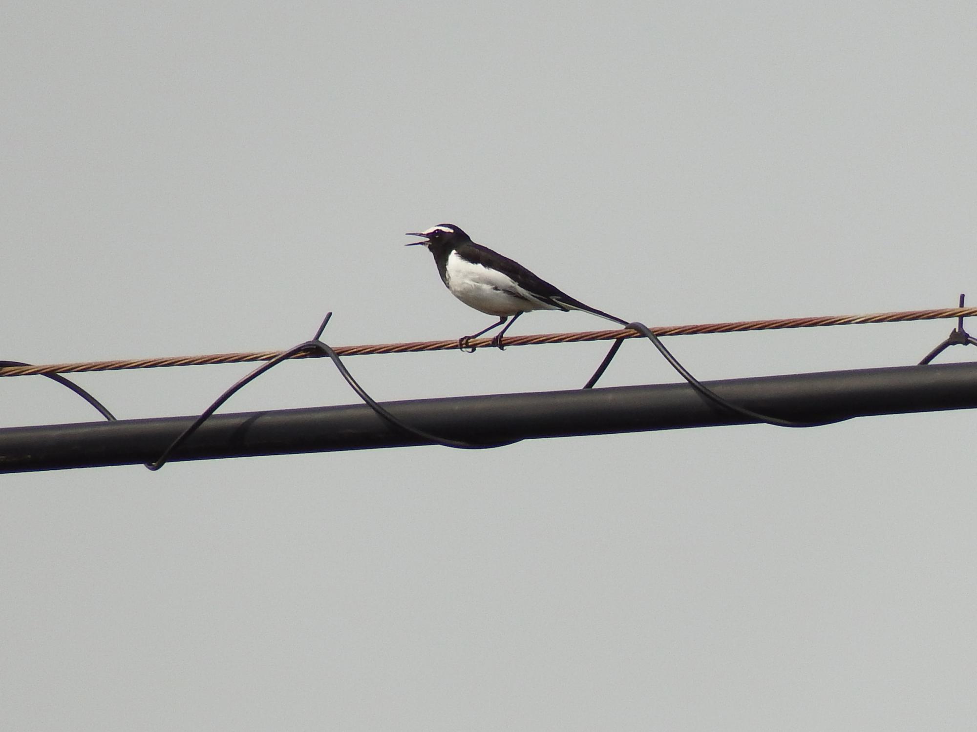 川の上の電線にセグロセキレイ。