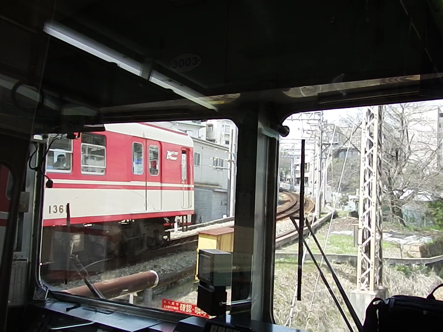 五社駅のような魅力的な駅が他にもあるはずと考え、探してみることにします。三田方面、粟生方面、どっちにしようかと迷ったのですが、鈴蘭台で接続の志染行電車は座ってカブリツキができない1300系だったので、このまま3000系で三田方面へ向かうことにします。志染行と同時発車!
