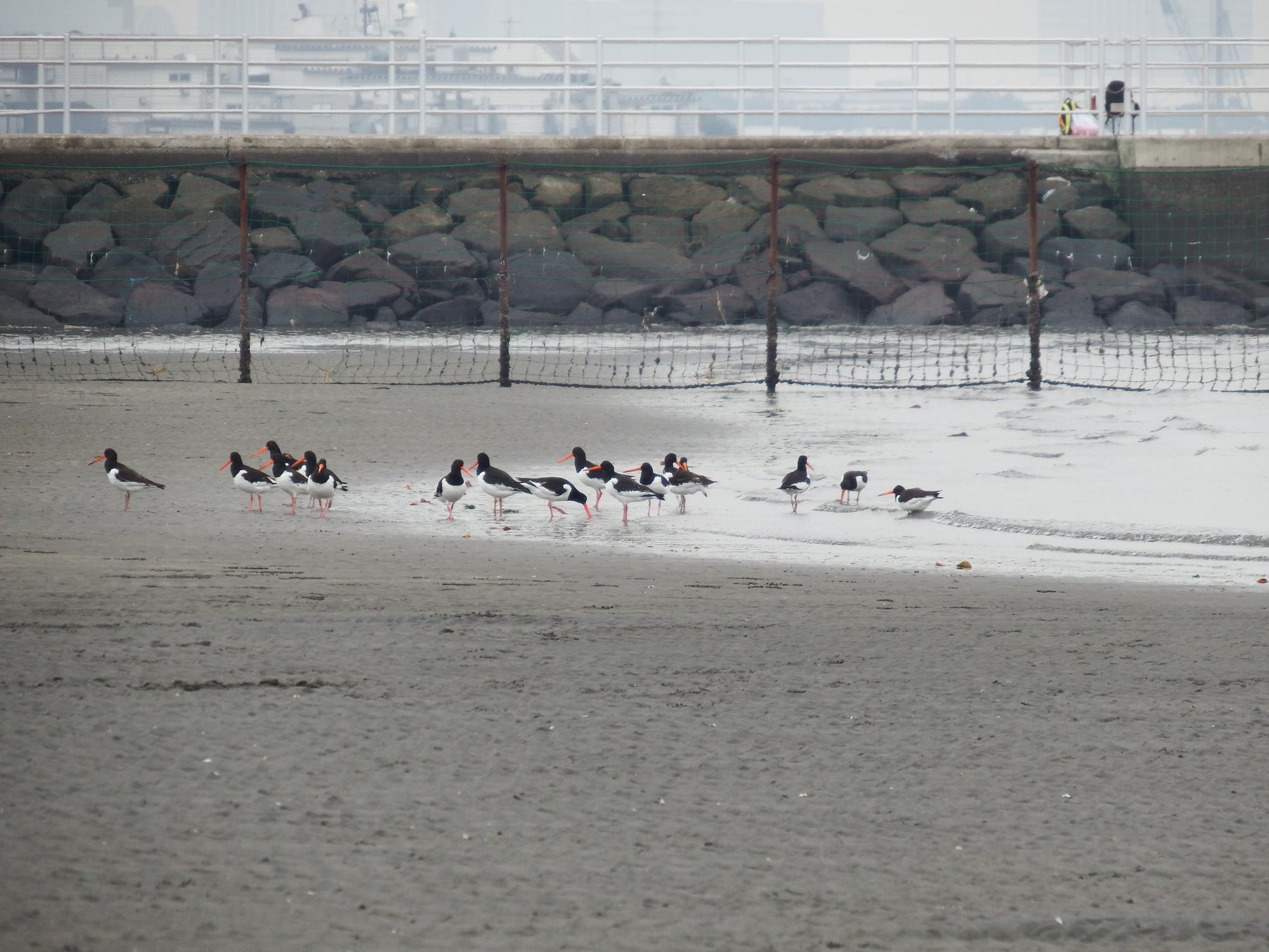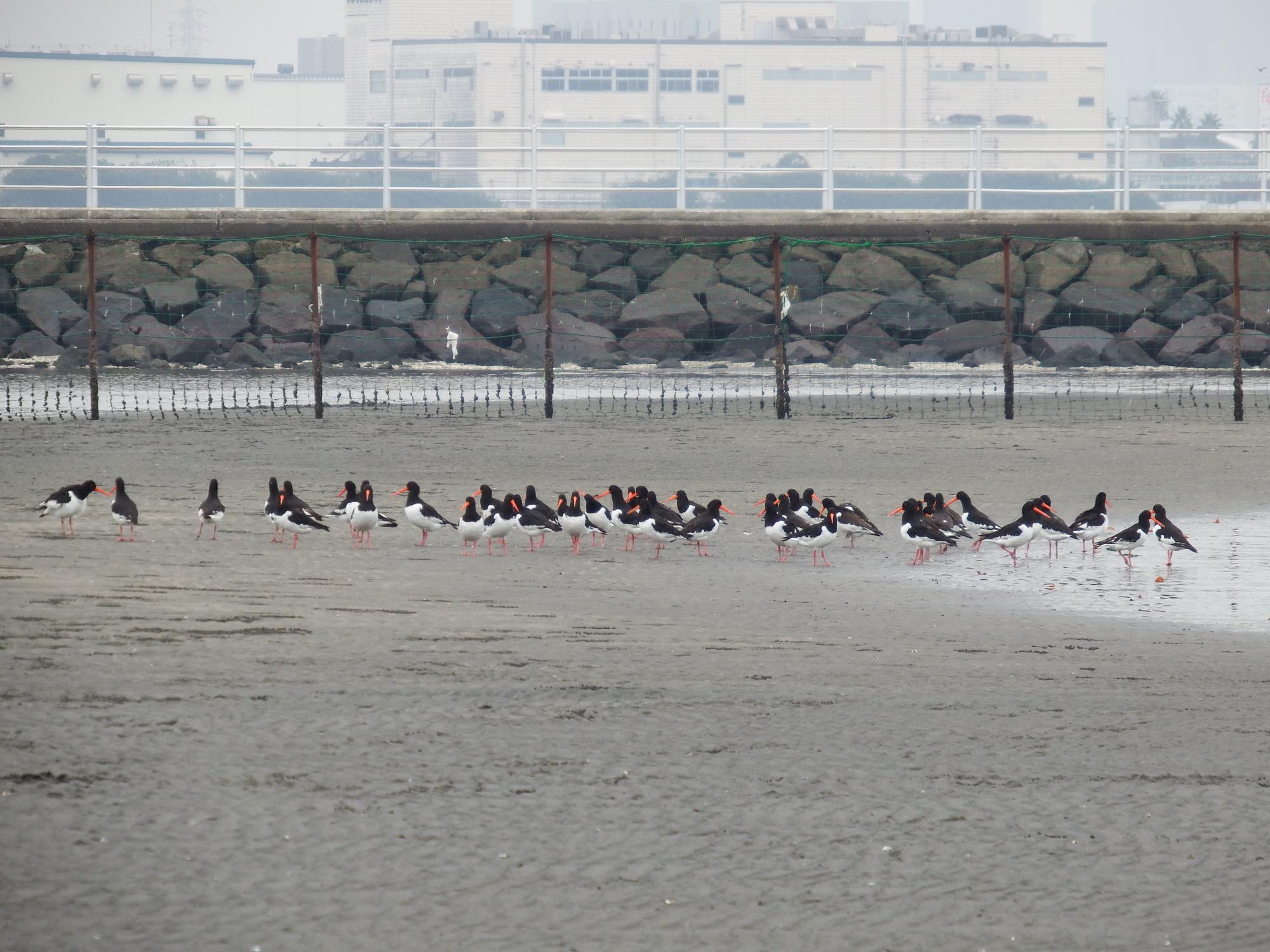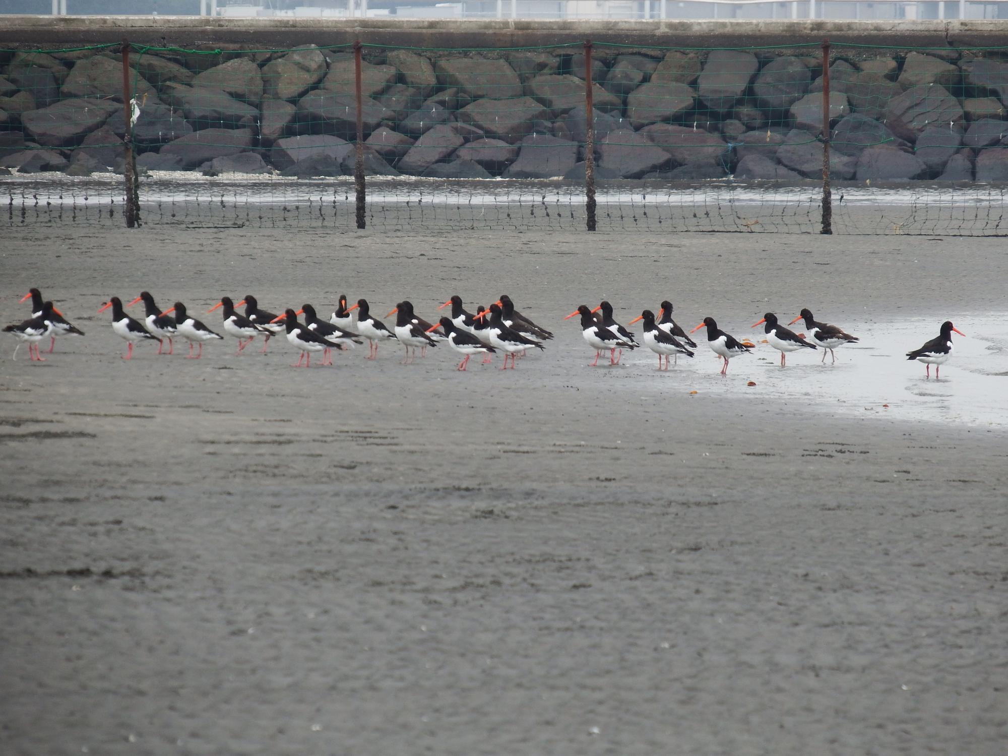 三番瀬の東の端の方にミヤコドリの集団が、20羽くらい。