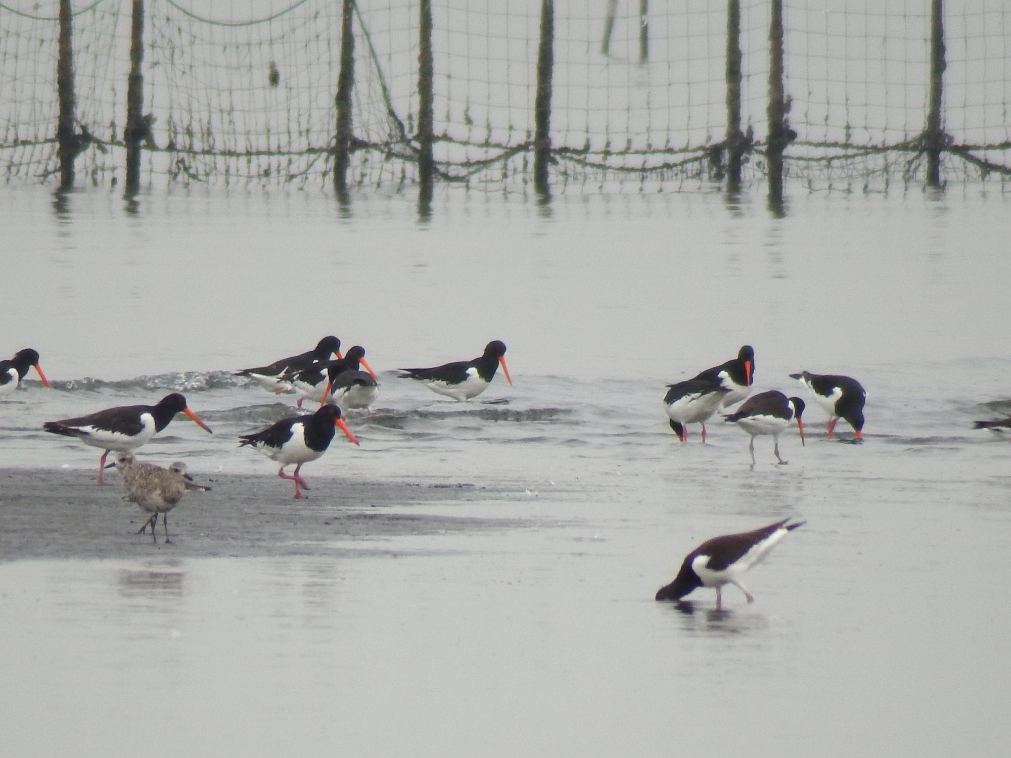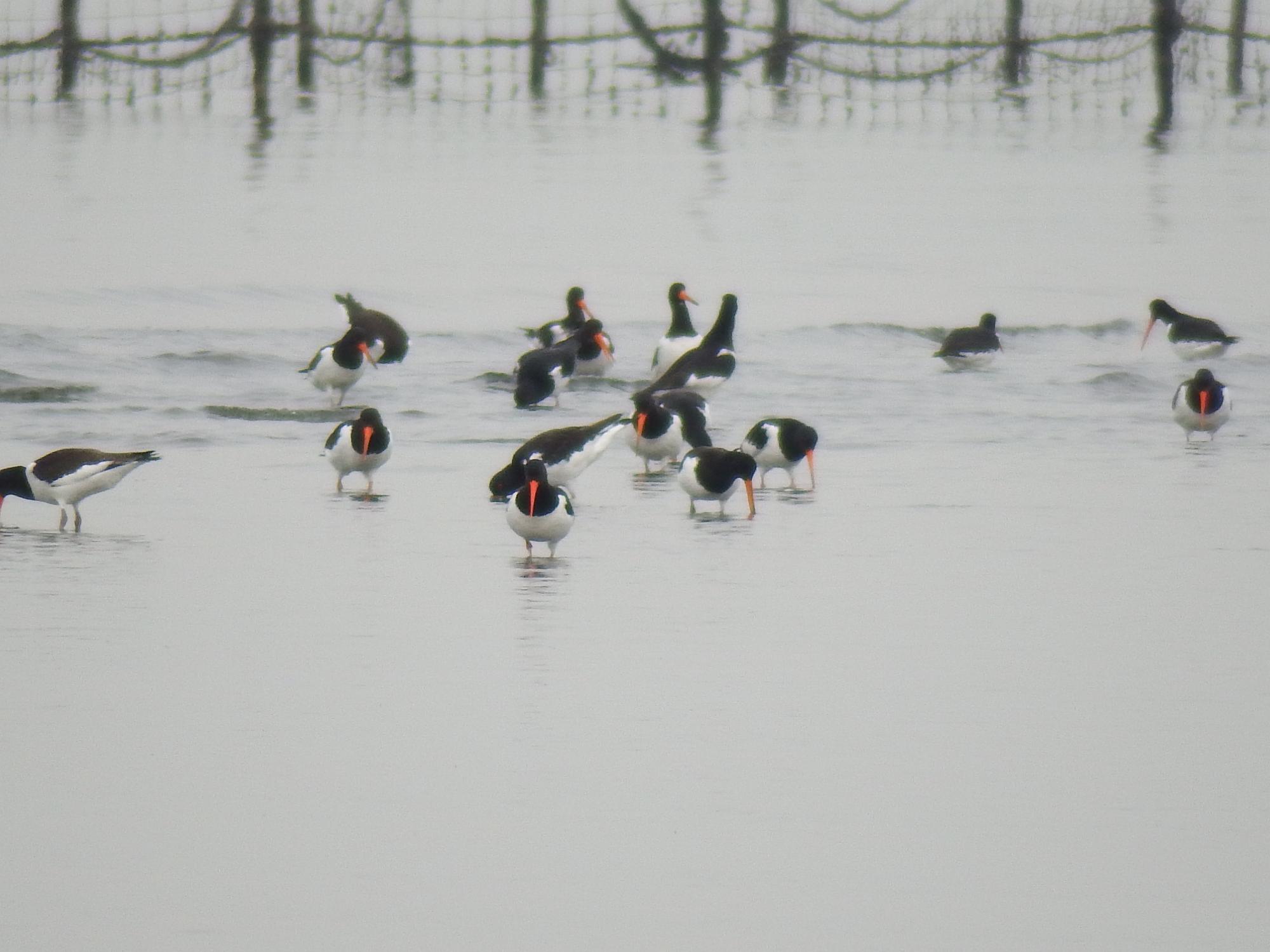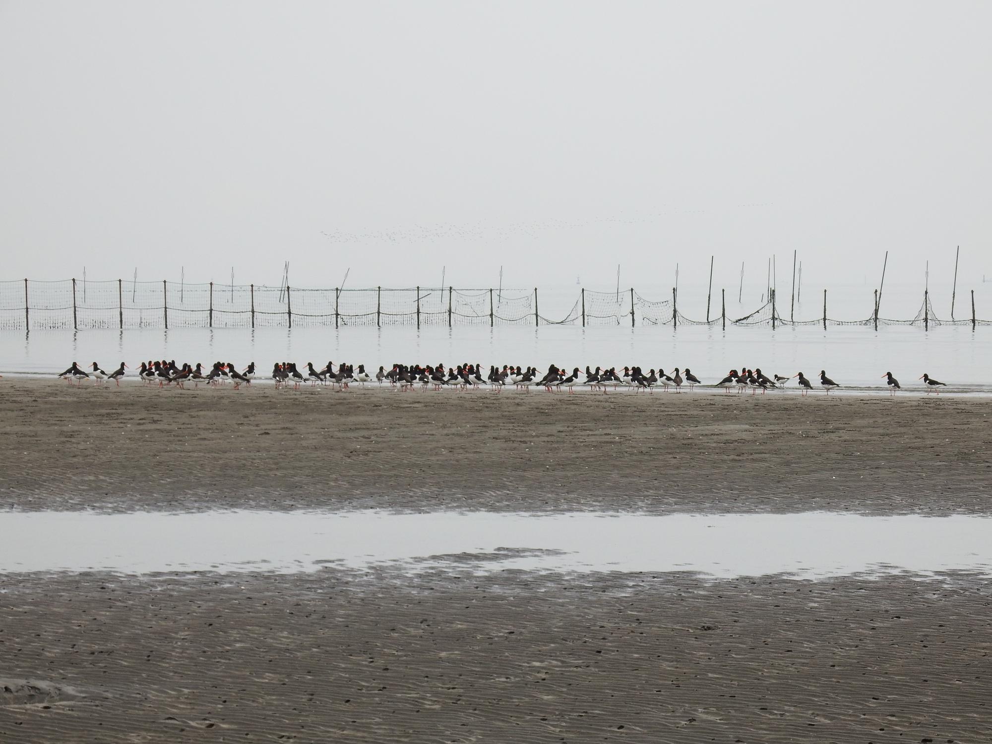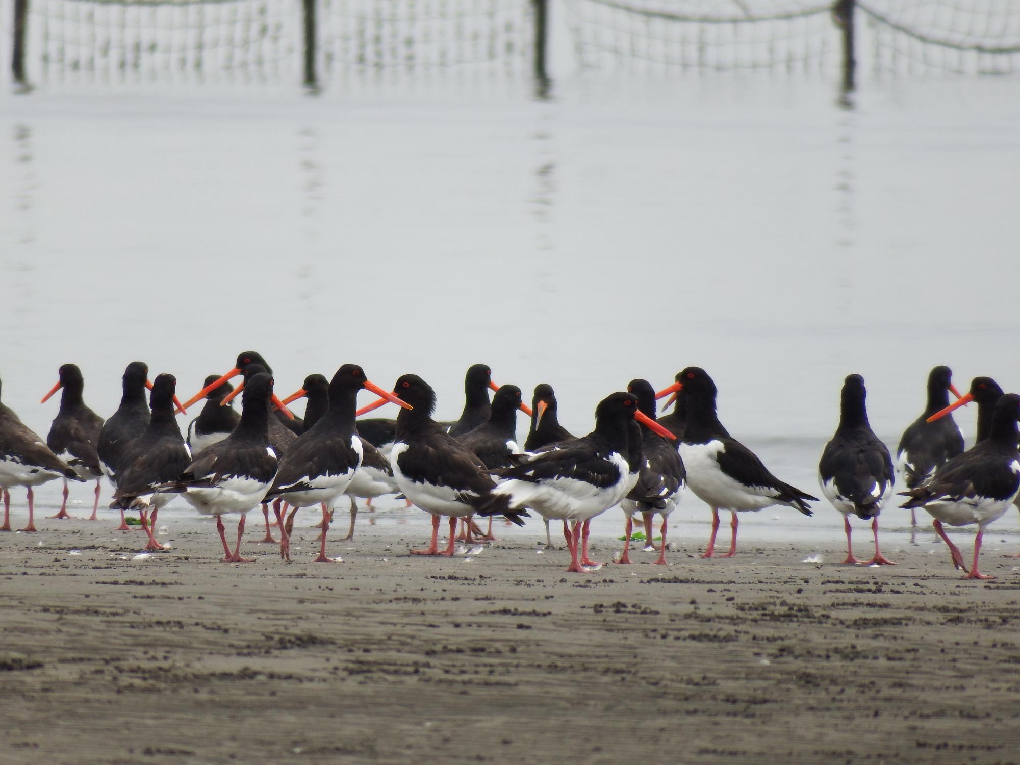 浜の方からミヤコドリ軍団を振り返ると100羽くらいに増えていました。