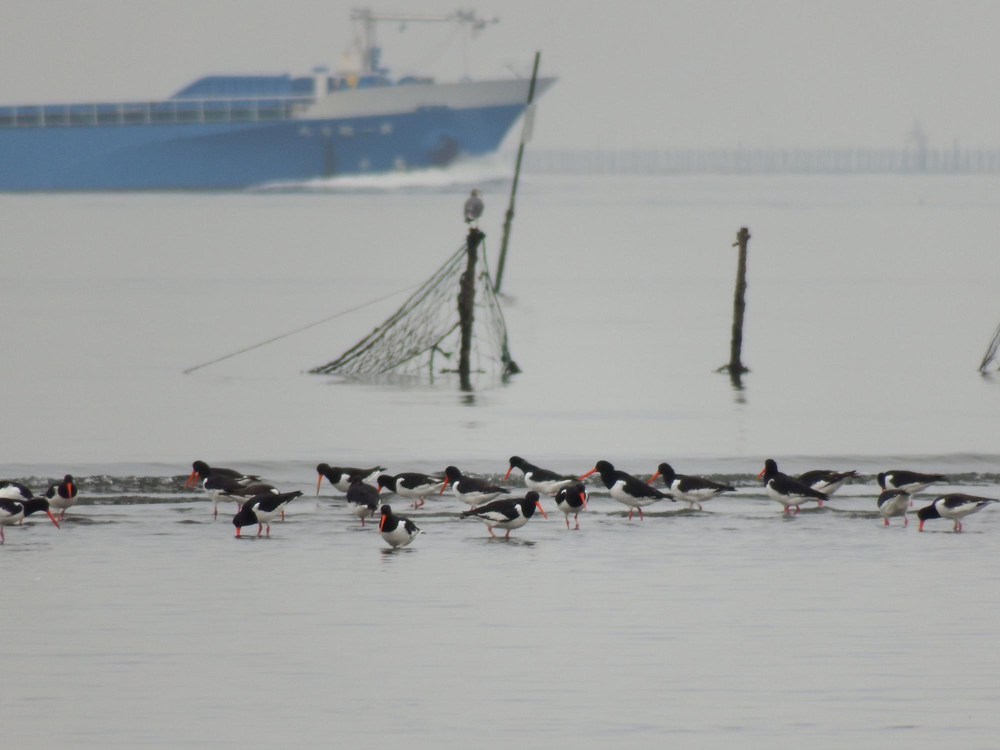 貨物船とミヤコドリ貨物船とミヤコドリ