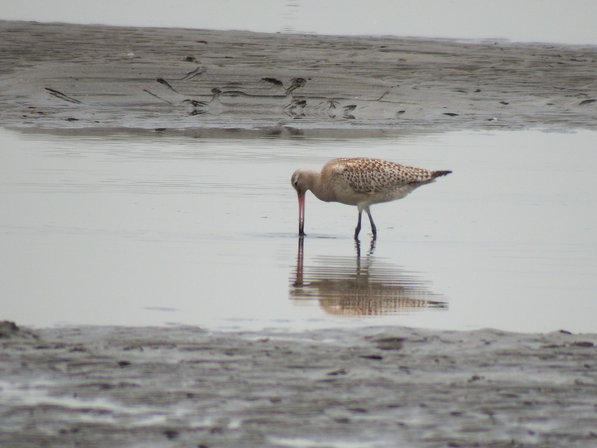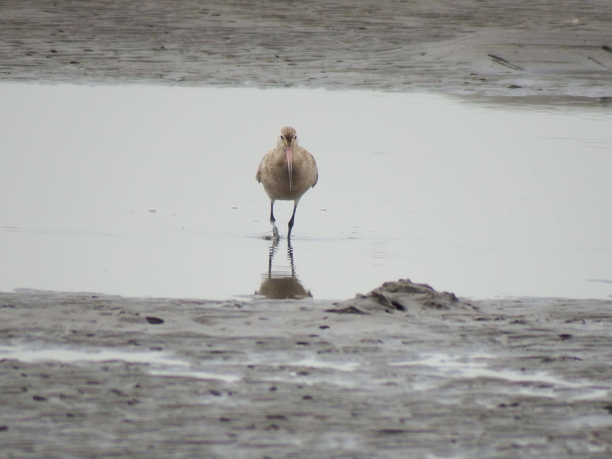 オオソリハシシギ、潮位が上がってきてどんどん陸地に近いところにやってきます。干潟の鳥見は満潮後の引き潮がいいと聞いていたのですが、上げ潮の場合、鳥がだんだん近づいてくる面白さがあるとわかりました。