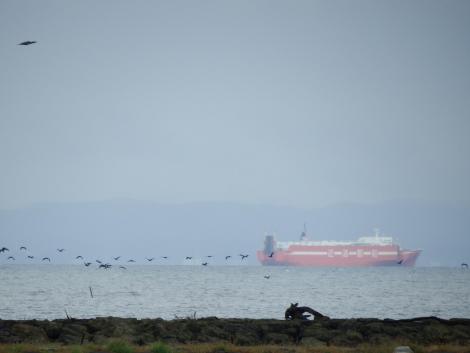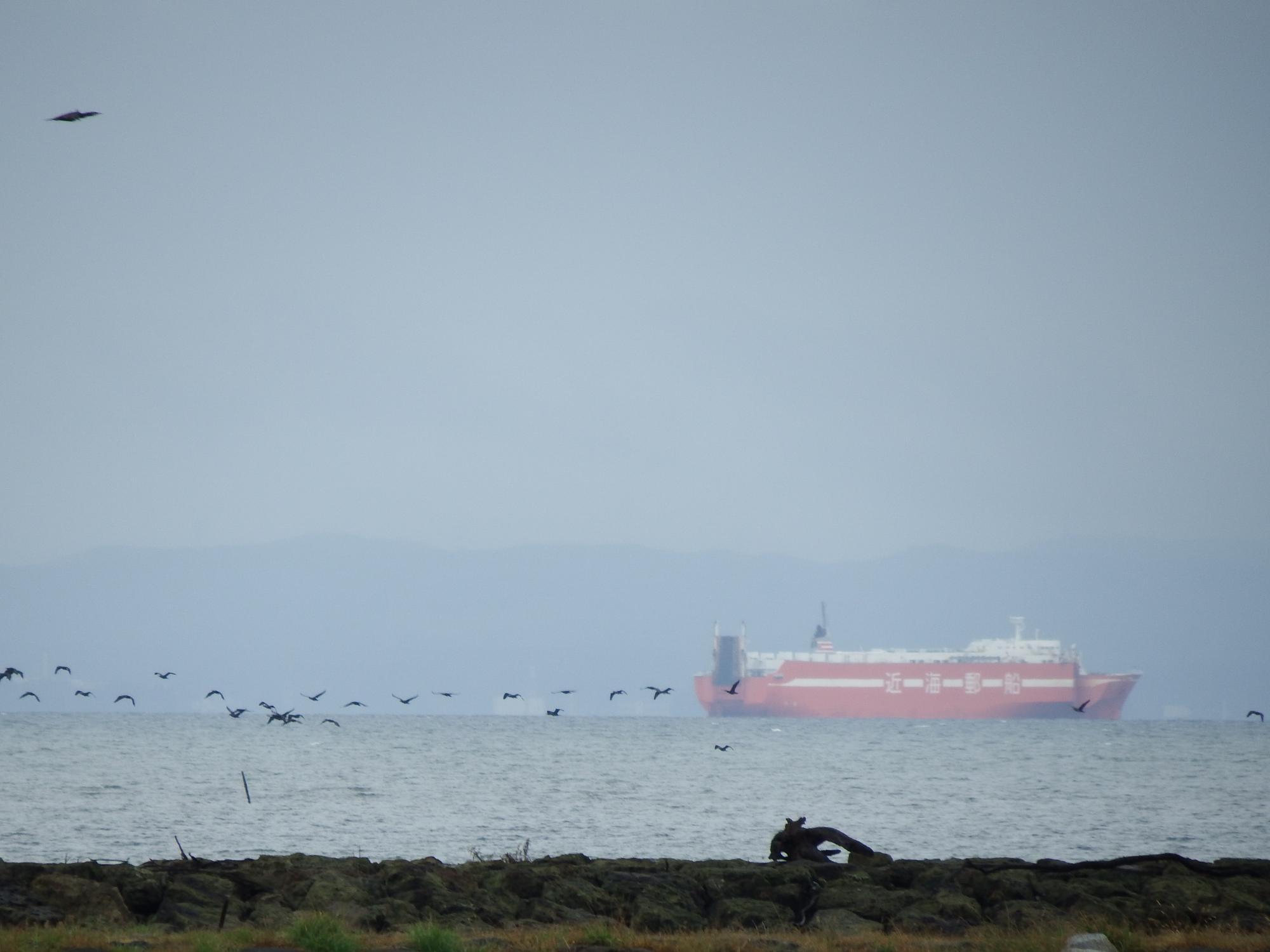 貨物船とミヤコドリ。