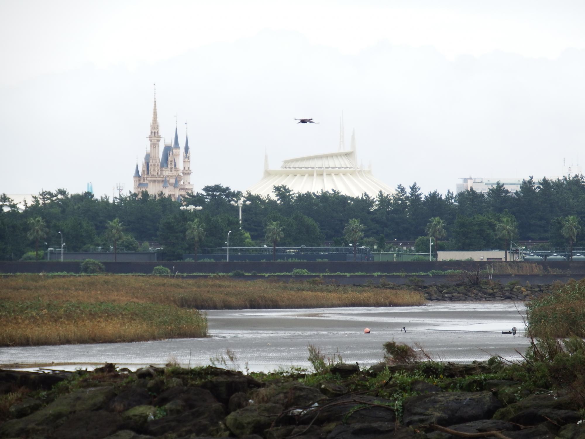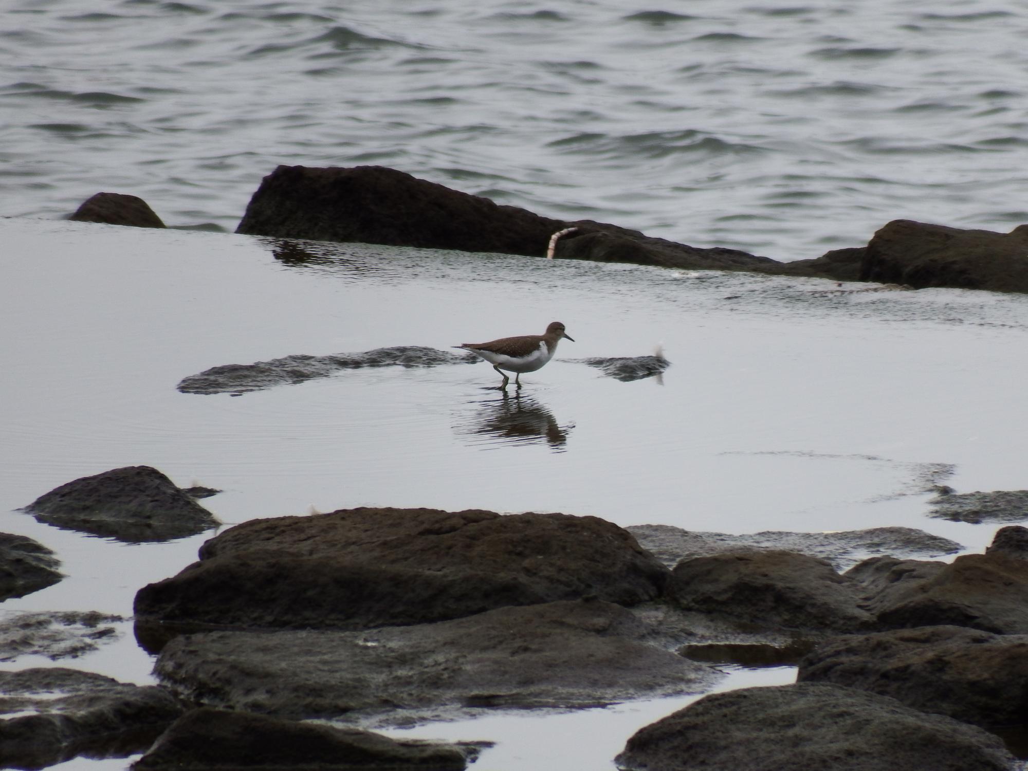 スペースマウンテン上空のウと、いつもながらひとりぼっちのイソシギ。