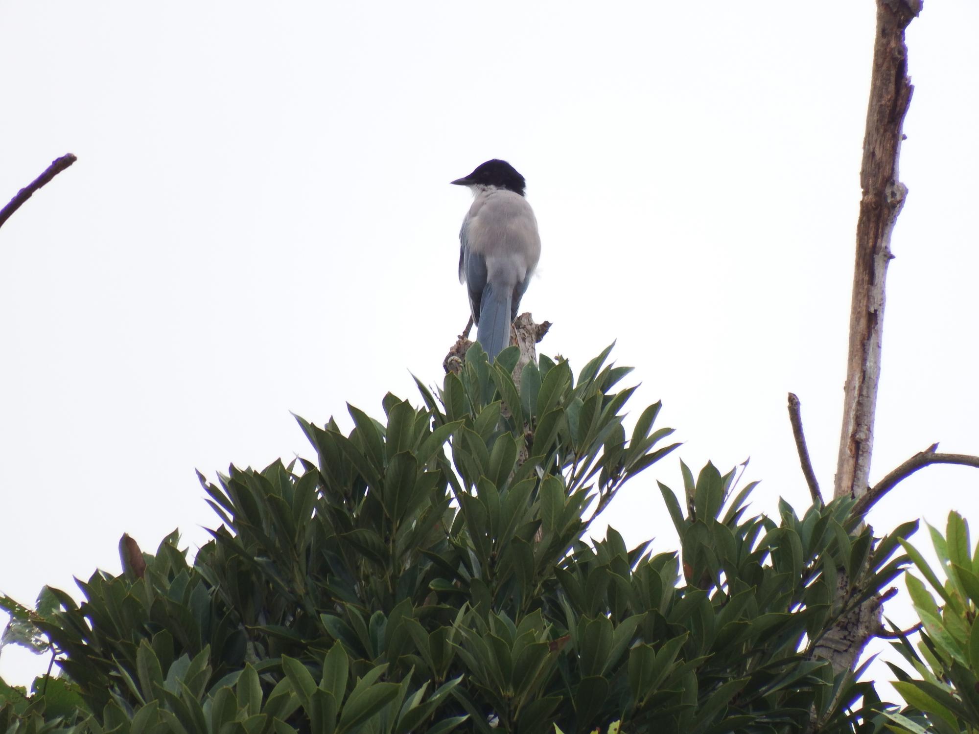 オナガ発見、なぜか西日本にはいない、東日本にしか生息していない割に東京周辺でも普通種、今回の東京出張でぜひ見つけたかった鳥です。会えて良かった。