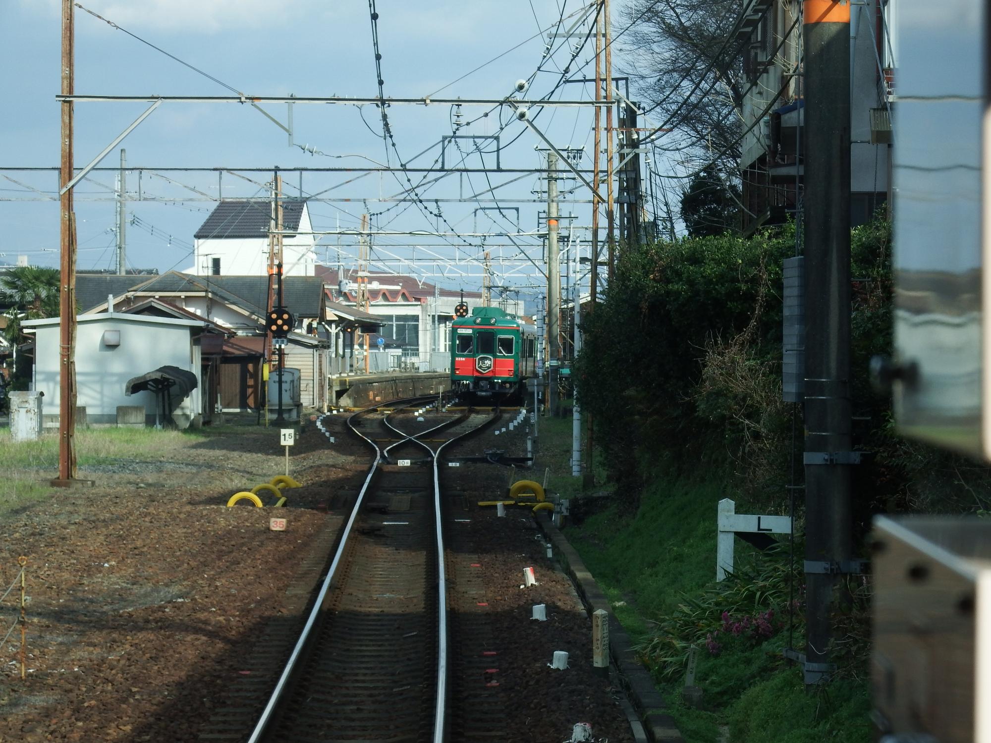 紀伊細川とどっちにしようかと迷って九度山で下車。2000系真田赤備え列車と交換です。
