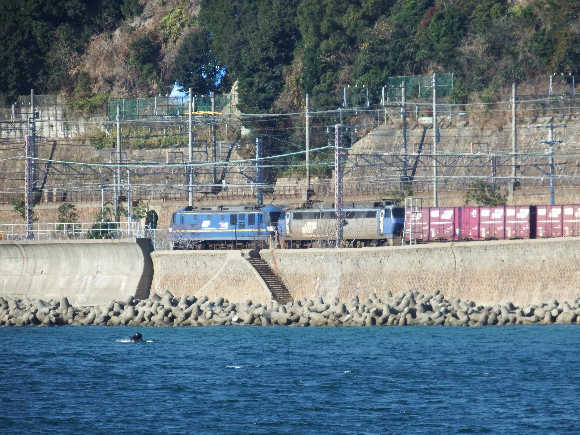 カツオドリは諦めて撮り鉄します。EF210+EF200の重連と山陽3000系。
