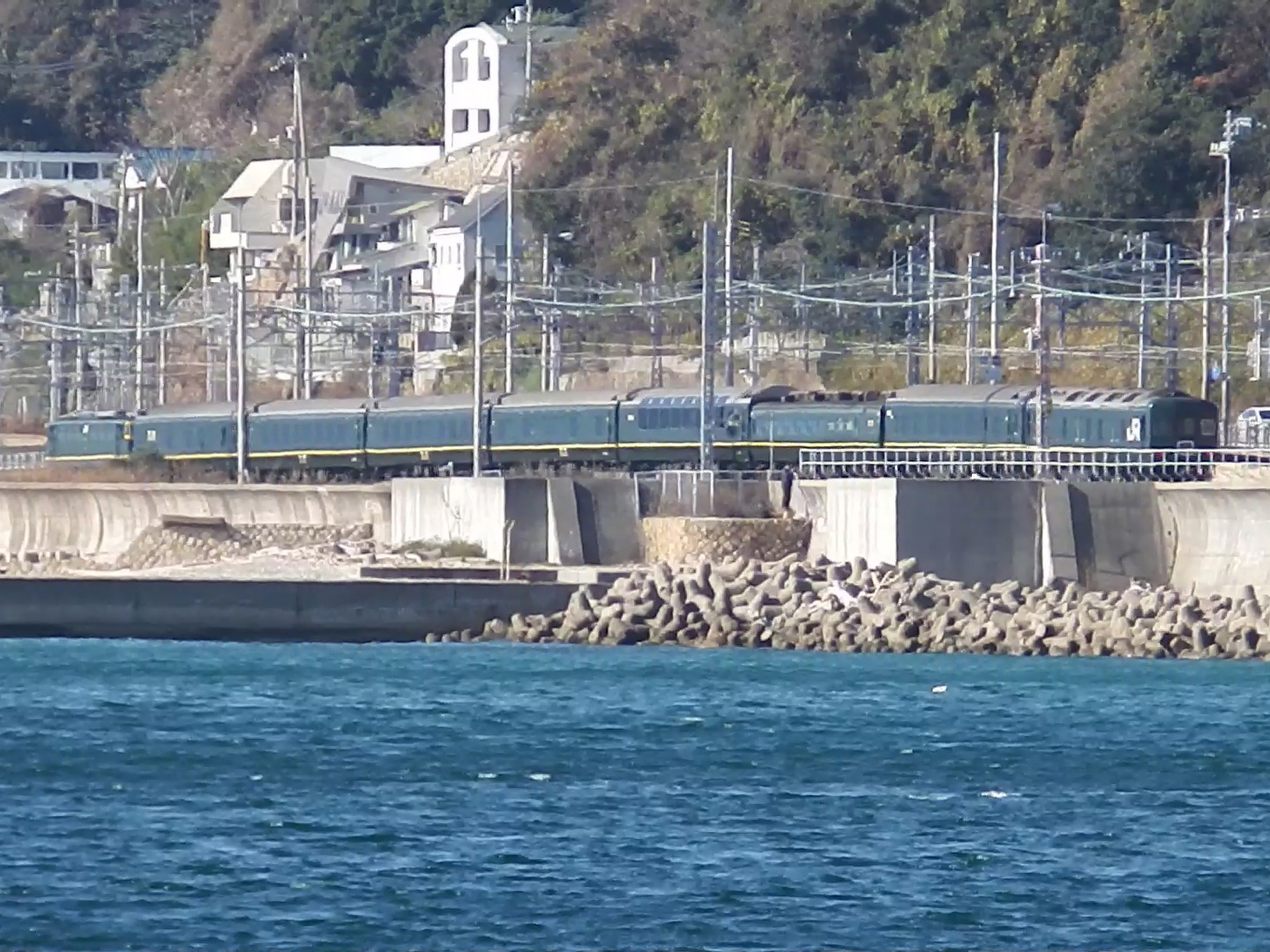 運よく3000系アルミ車がやってきました。3000系アルミ車は普通電車専用ですが、概ねこのクロスシート、転換はできませんが、海を眺めるにはバッチリ。
