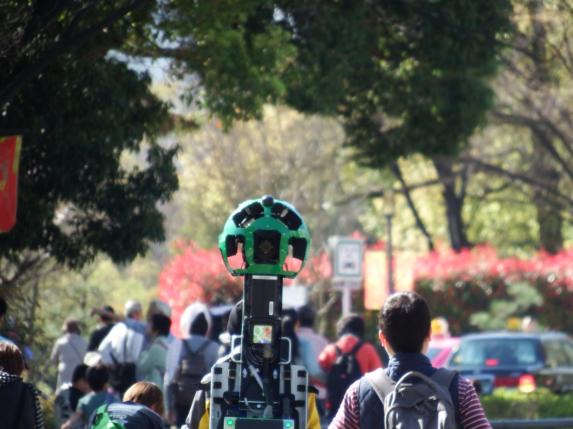 朝から人の多い大阪城公園、Googleの人がいました。よくみると機材にGooglo Mapのロゴ。