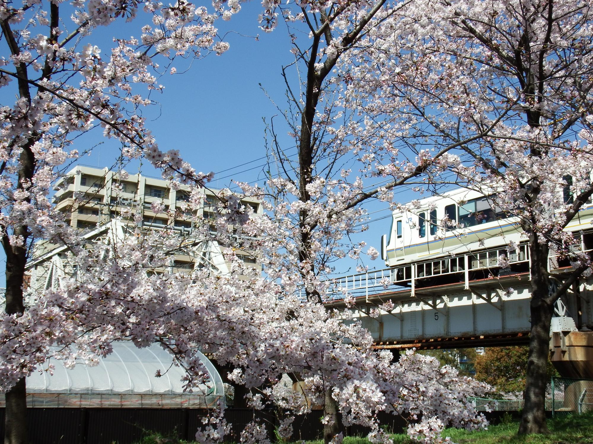 桜ノ宮公園の桜の額縁に103系は今のうちに。221系にも耳が生えてきていました。