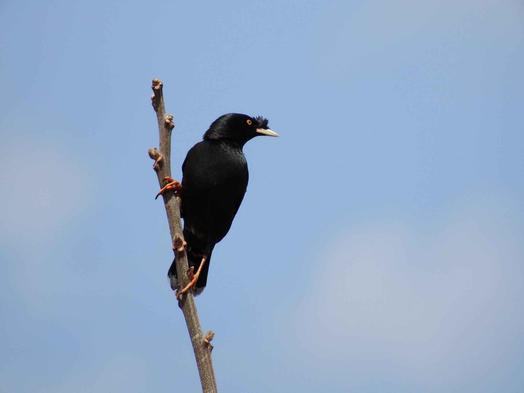 目の前の木に3羽の黒い鳥、ハッカチョウです。
