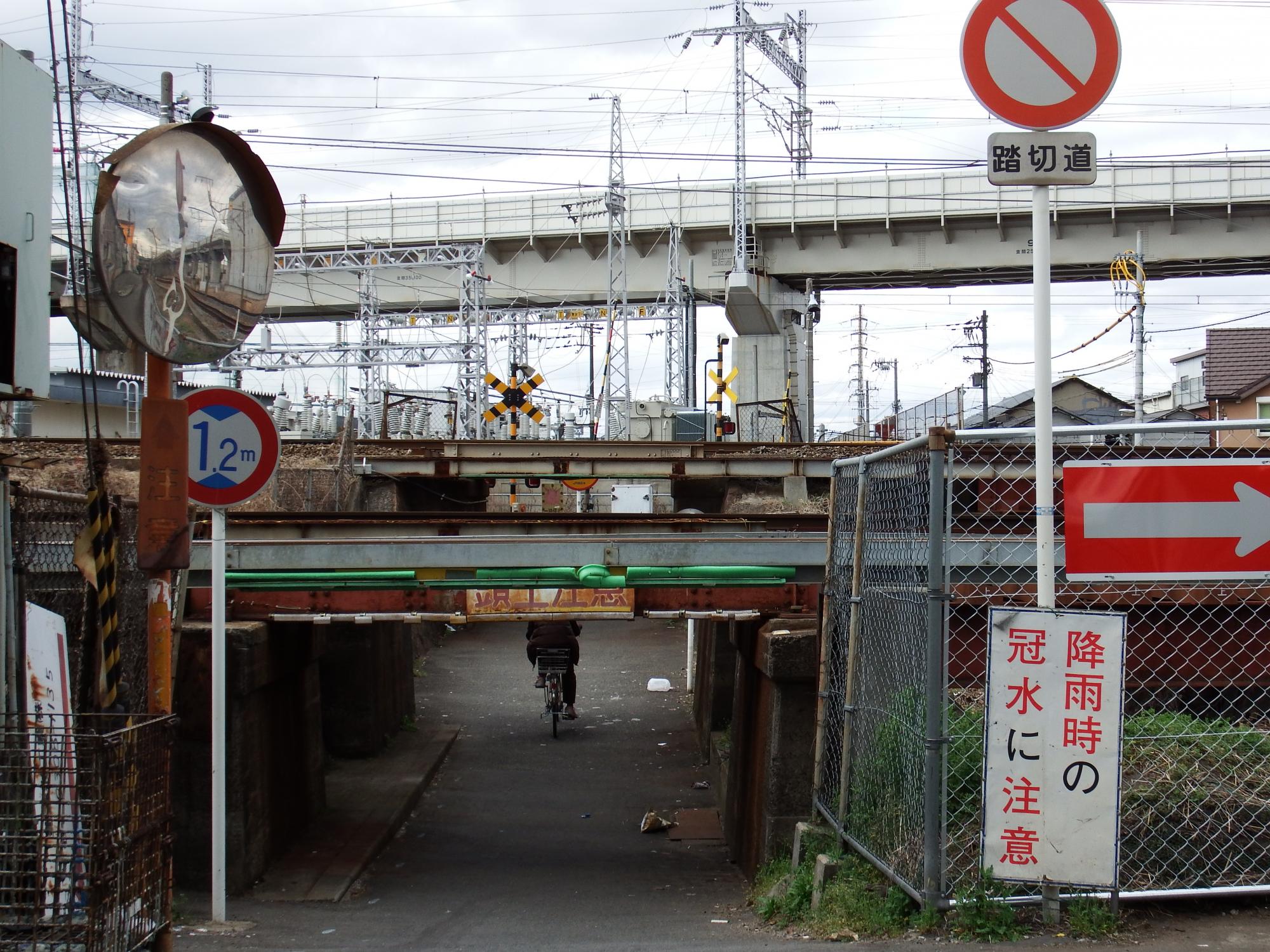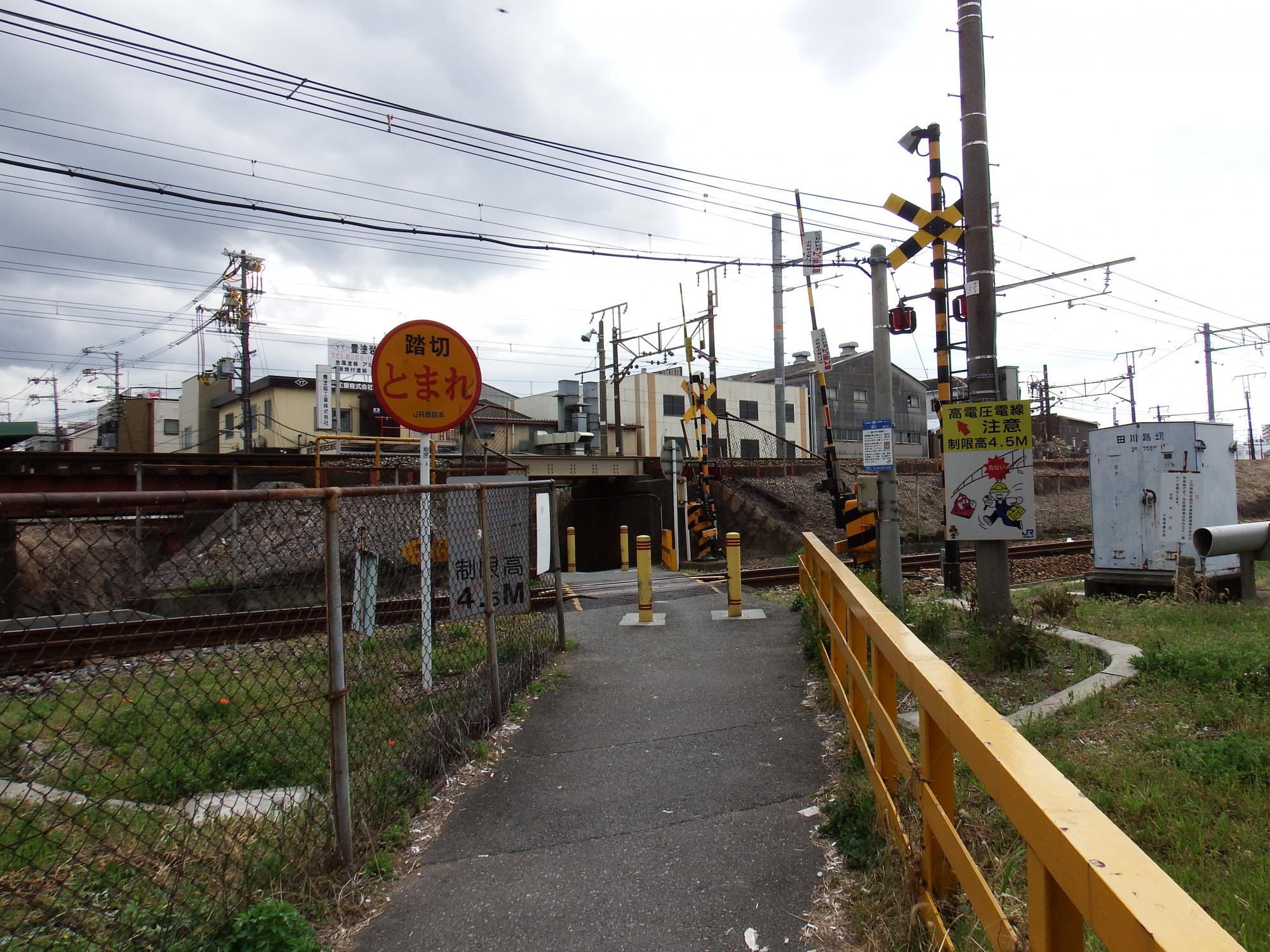 そのすぐ西側の田川踏切、デルタ線神戸方面の上り線だけが踏切で、下り線は架道橋になっています。