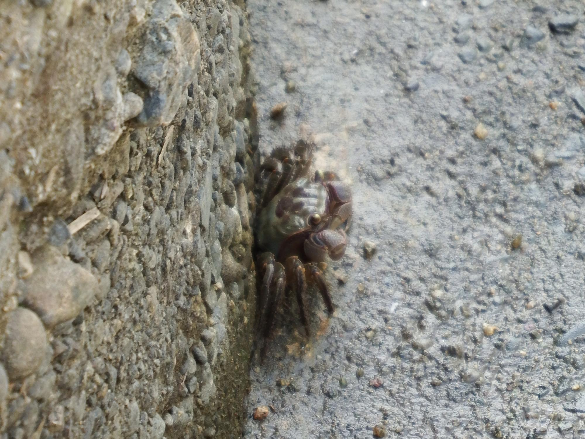 柴島干潟のいつもの場所にクロベンケイガニ、遠くにイソシギ。