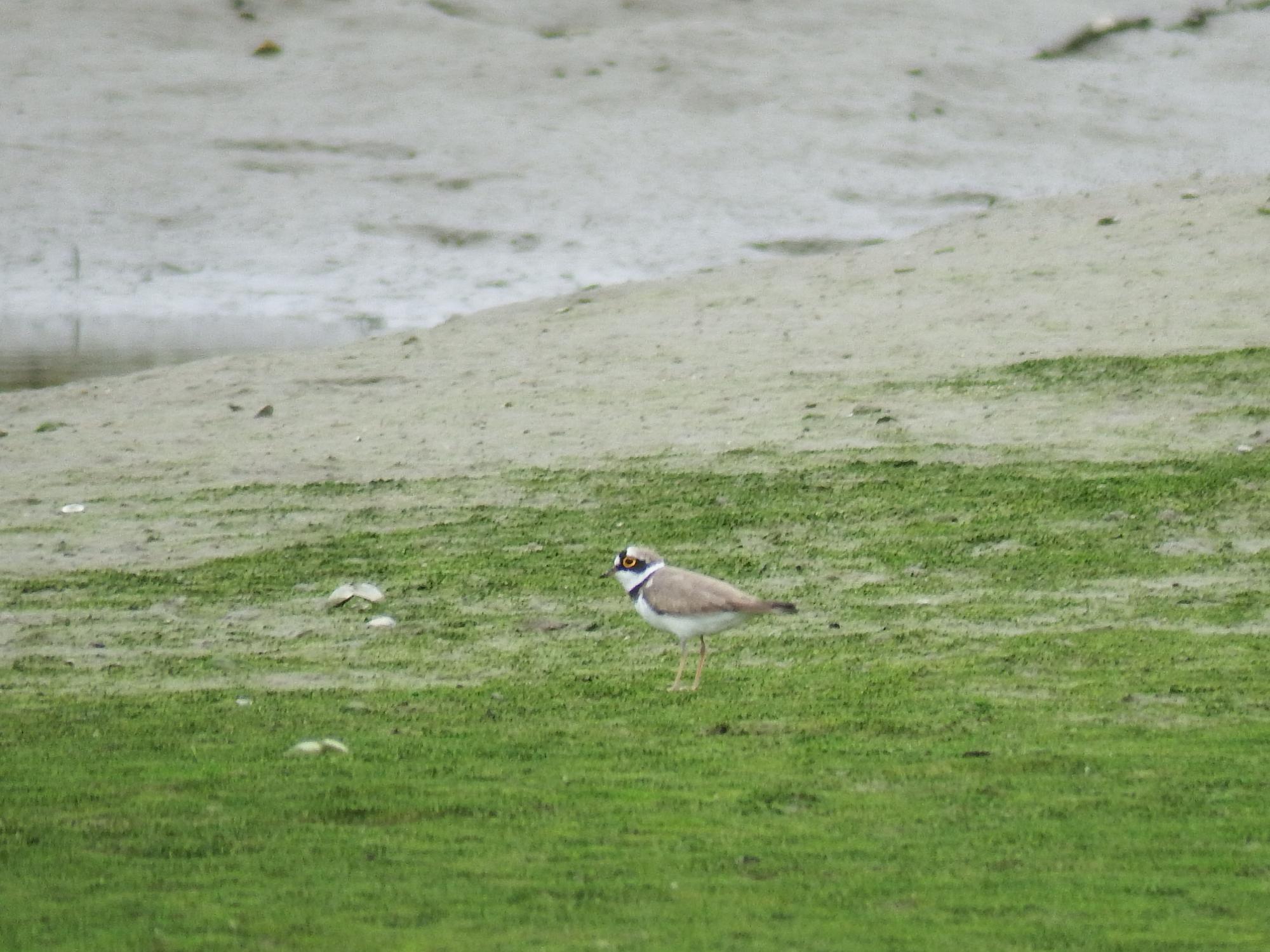 柴島まで戻ってきました。飛んでるコチドリが撮れ、干潟に下りてきました。