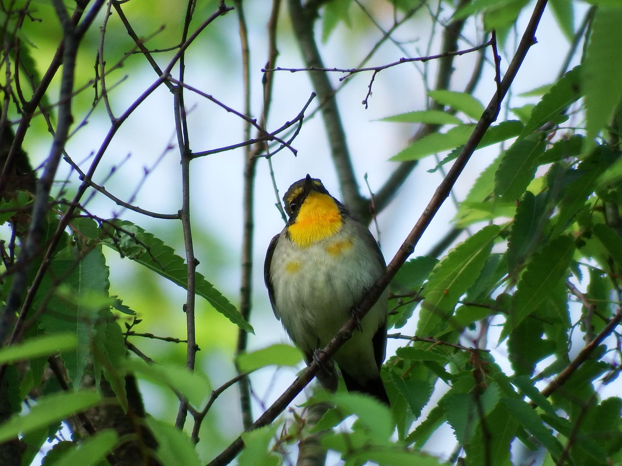 一番櫓前のキビタキ、まだ若鳥のようです。