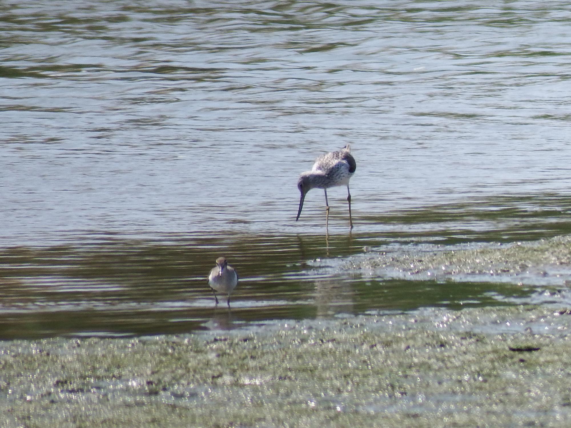 イソシギとアオアシシギ。
