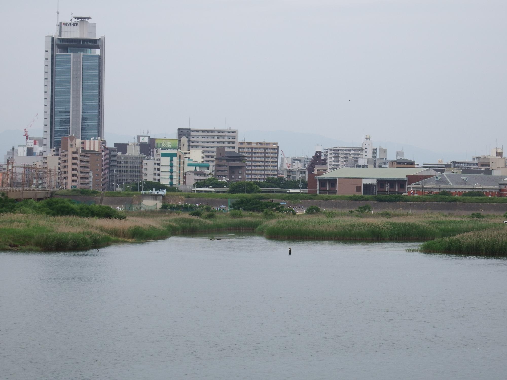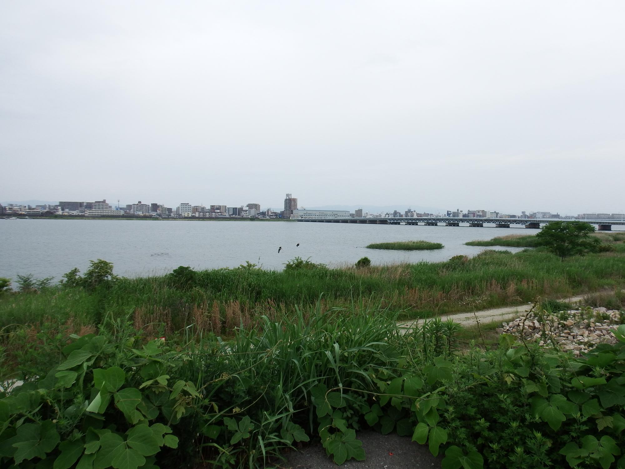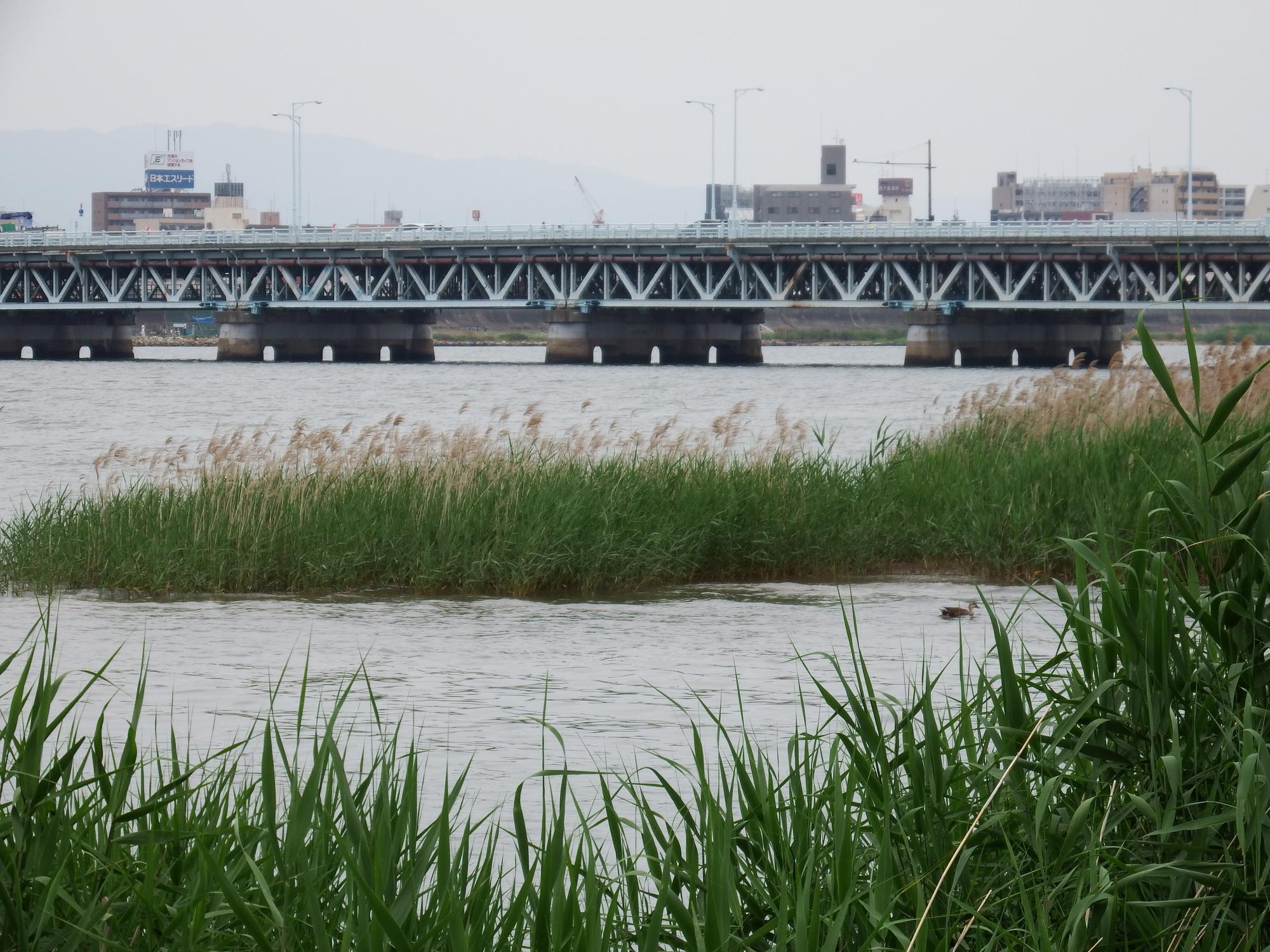 左岸から柴島干潟をチェック、完全に水没していて全く地面がありません。