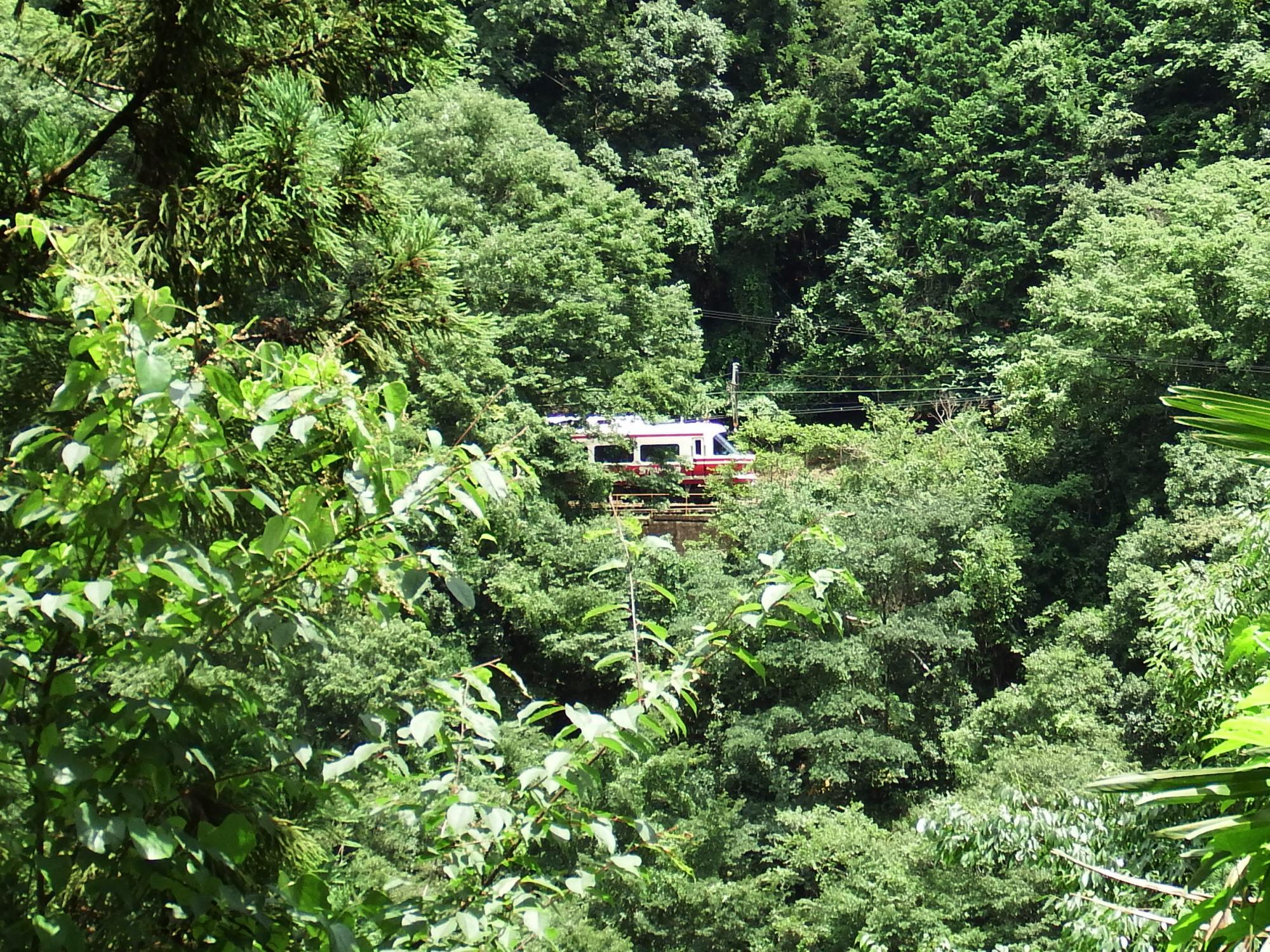 このページ5枚目の写真のところまでやってきました。2000系電車が急勾配を登って行くのがよく見えます。