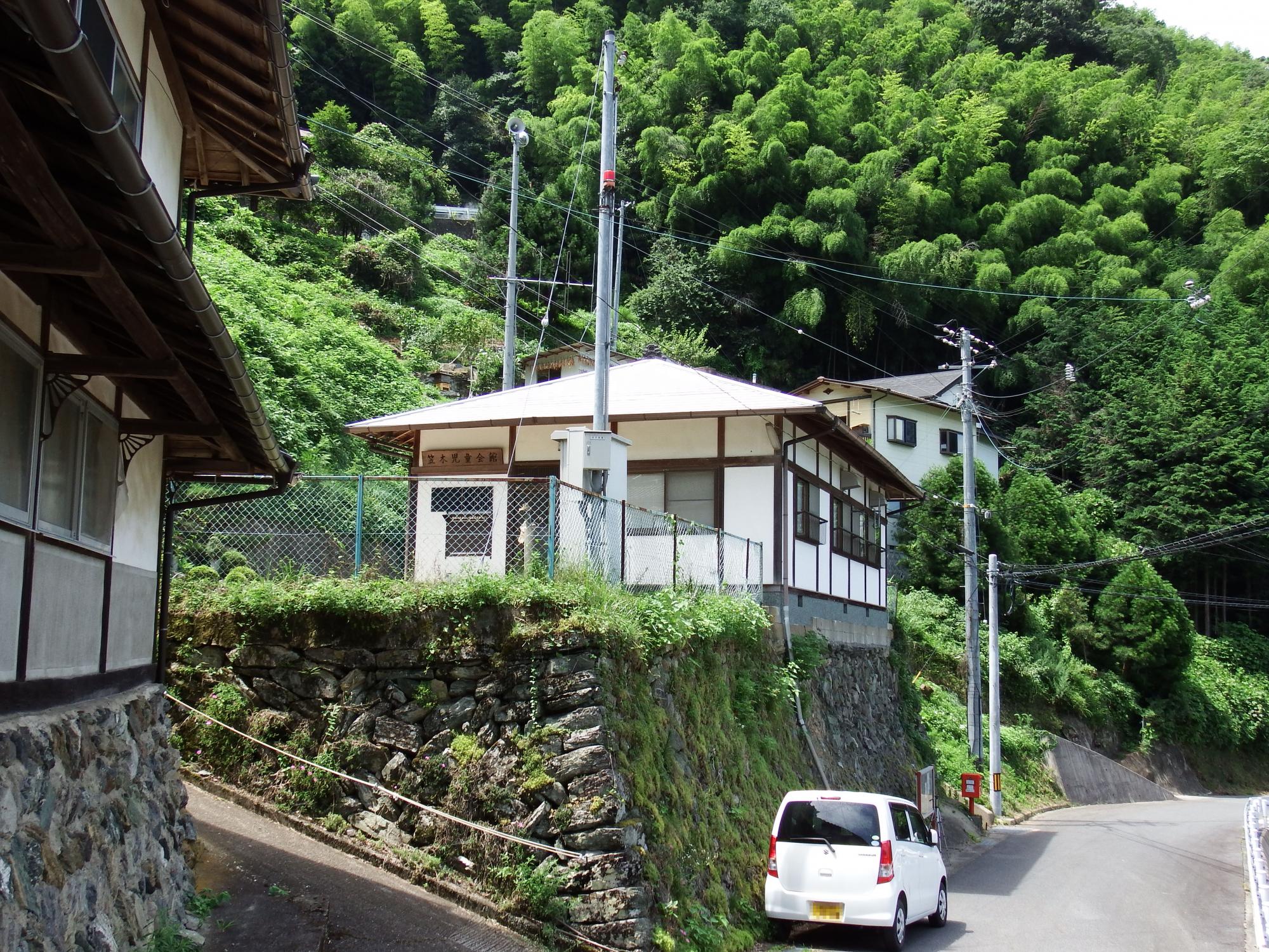 次の電車がくるまで小一時間空いてしまうのですが、笠木児童会館という建物の陰で待ってみることにします。児童会館とはいうものの、この集落に子供がいるとは想像しにくいです。