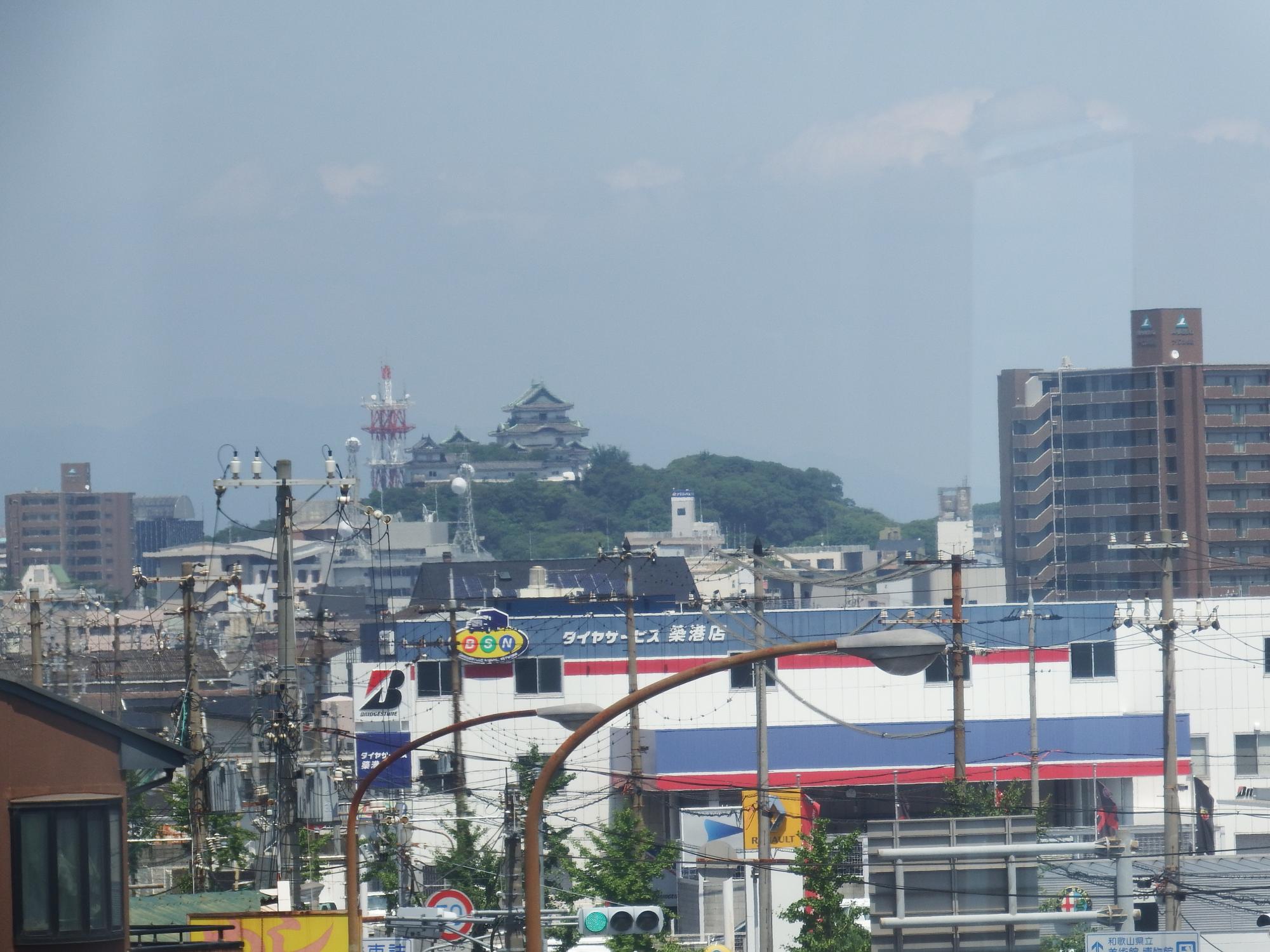 フェリーからの乗り継ぎ客30人くらいを乗せた電車で和歌山市駅へ戻ります。車窓から和歌山城も見えます。