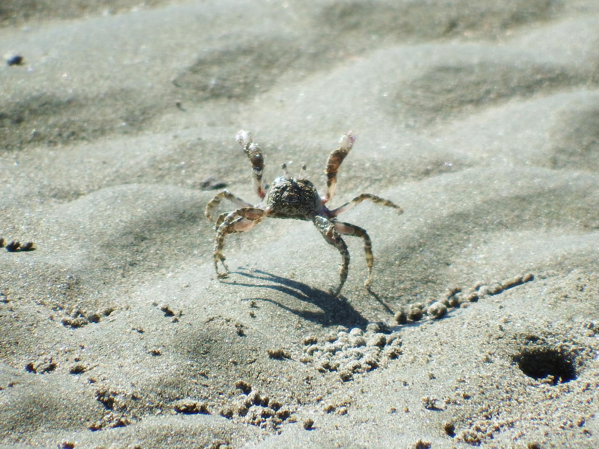 コメツキガニです。両手を上げて踊るカニは珍しい。スナガニの仲間なのでやはり砂団子を作ってます。