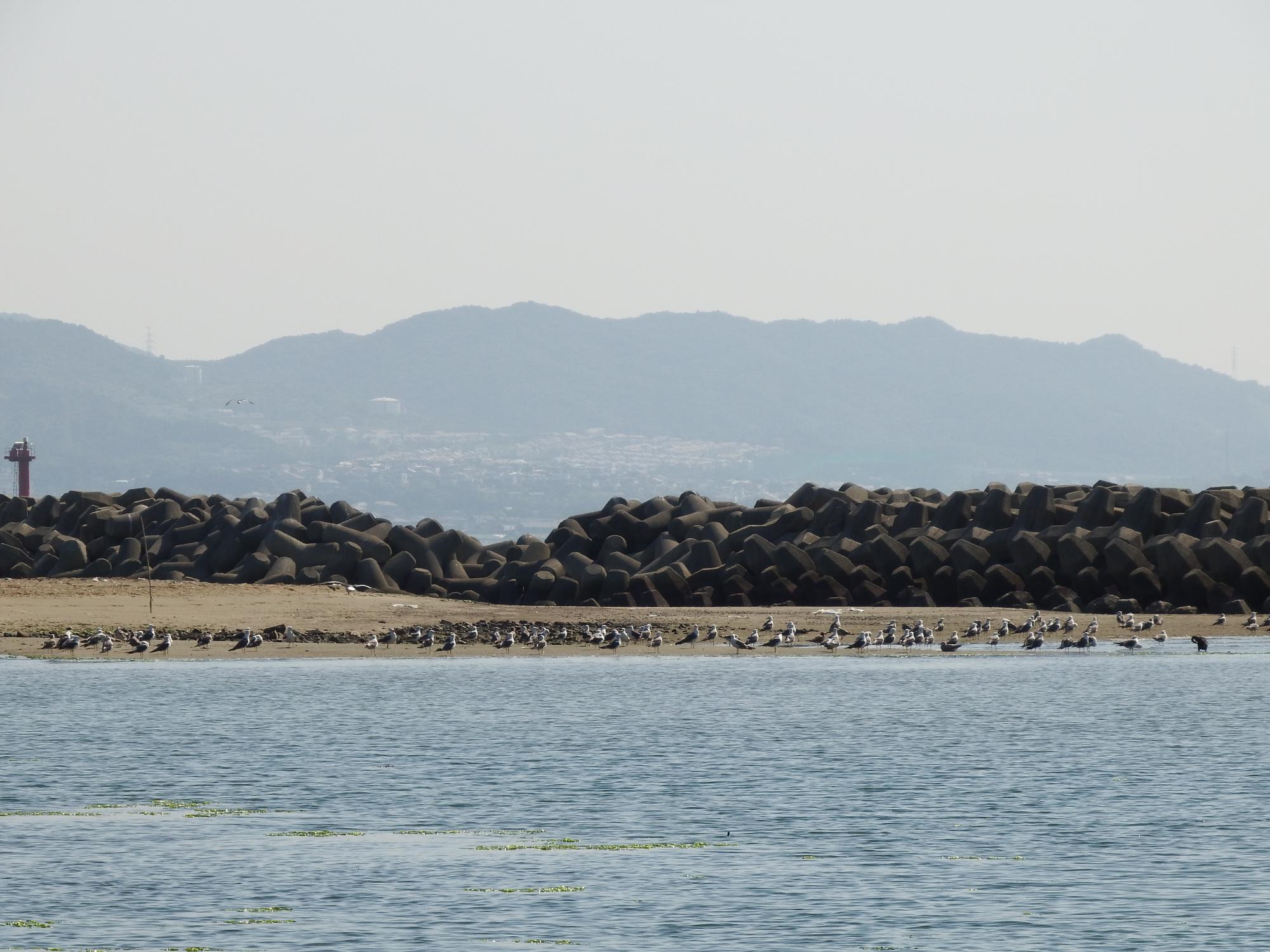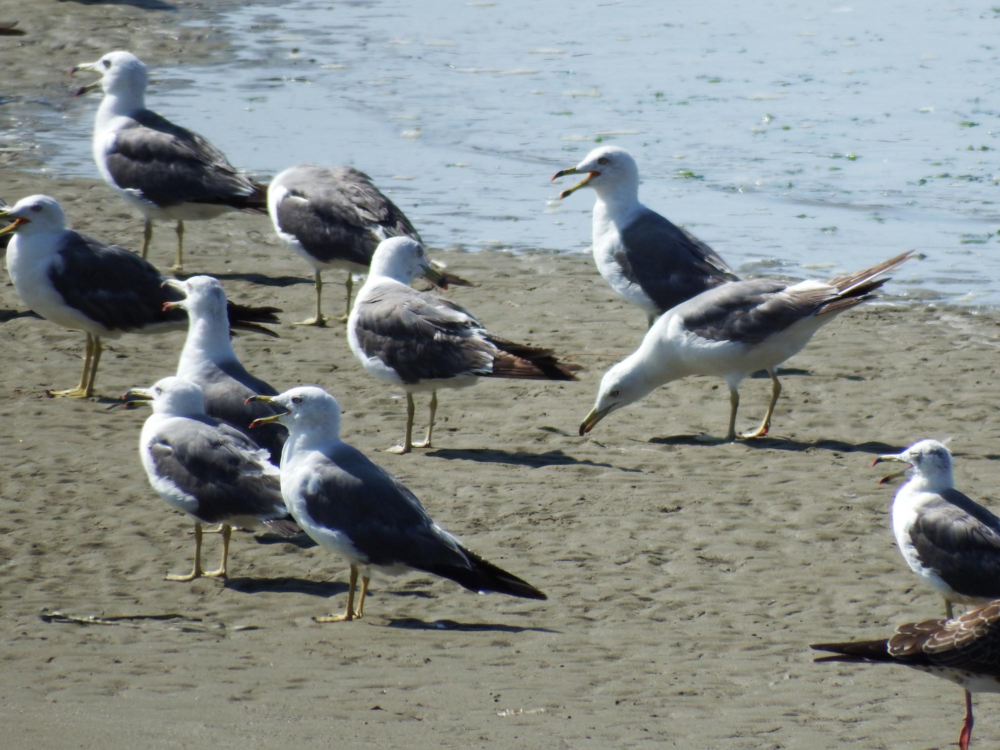 砂浜にウミネコが100羽くらい。