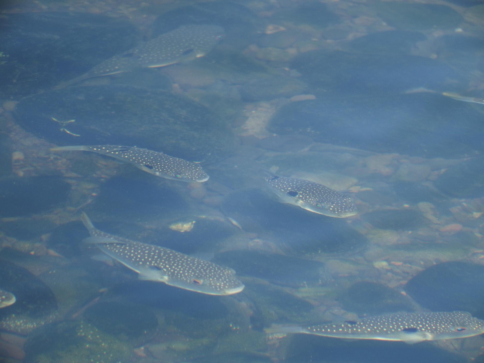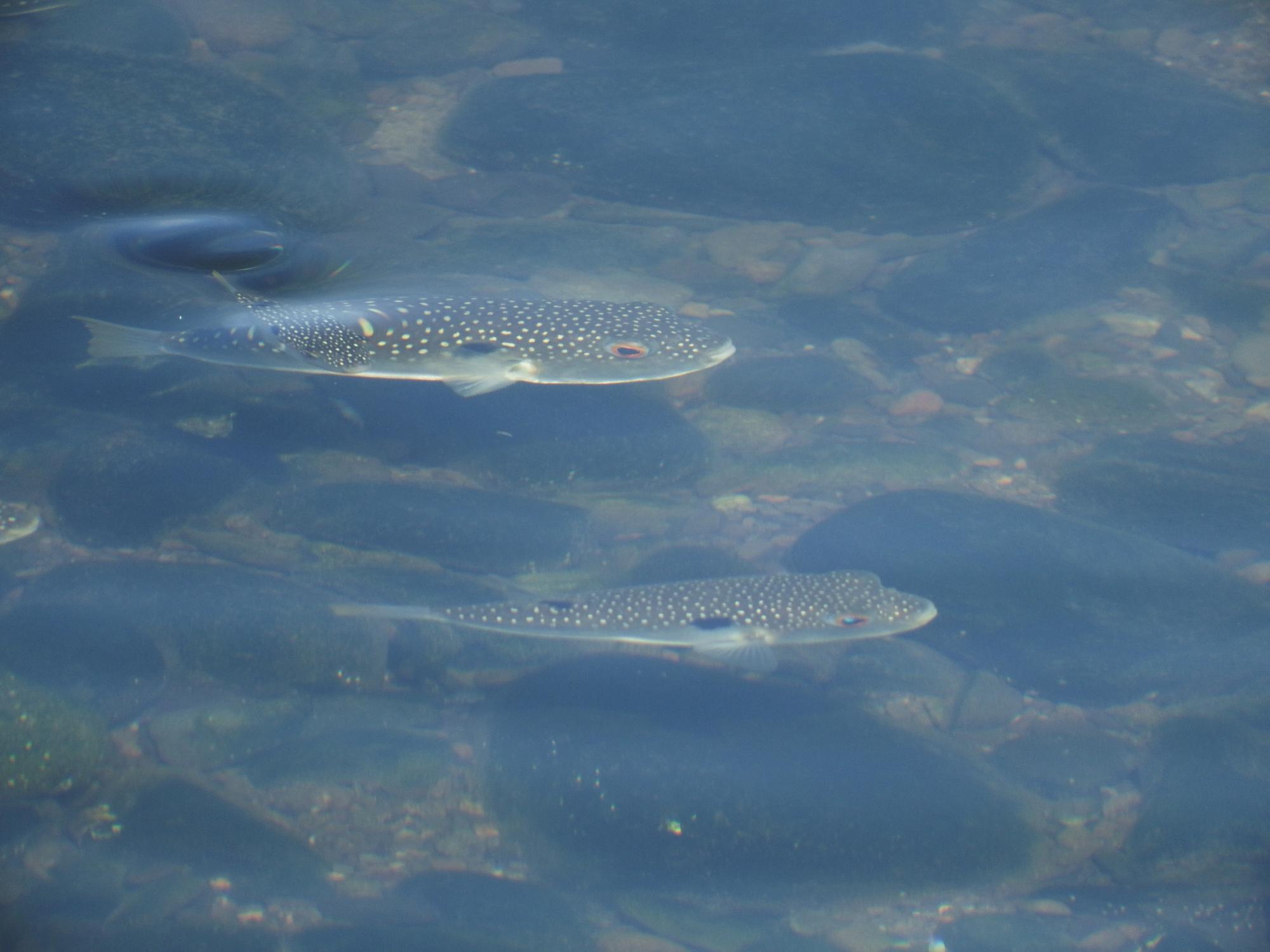 男里川を遡る魚の大軍団が見えます。なんとクサフグです。